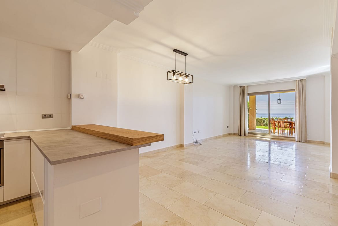 Although it’s on the ground floor, this apartment boasts stunning panoramic sea views as well as peaceful outlooks over the community’s lush, landscaped gardens.