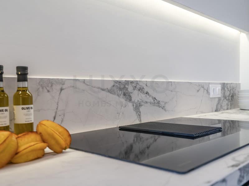 The apartment has been thoughtfully redesigned to maximise space and natural light, creating an exceptionally wide and spacious living area with a bright and open feel. The living room is stylishly finished and features a large TV screen and a cosy fireplace, making it the perfect place to relax and unwind.