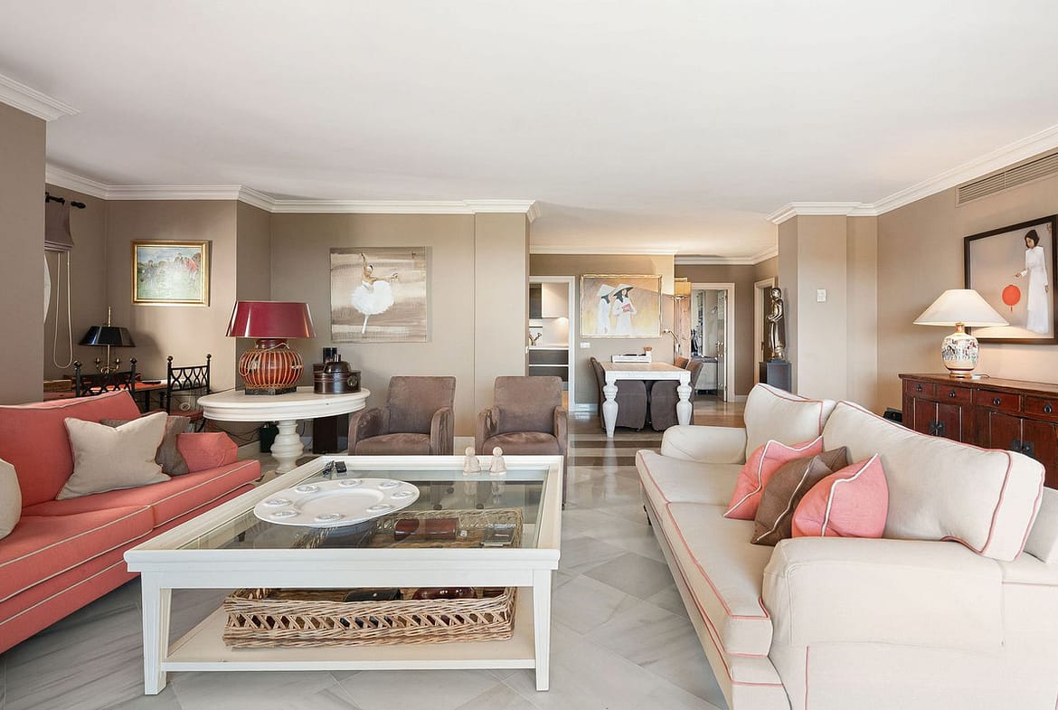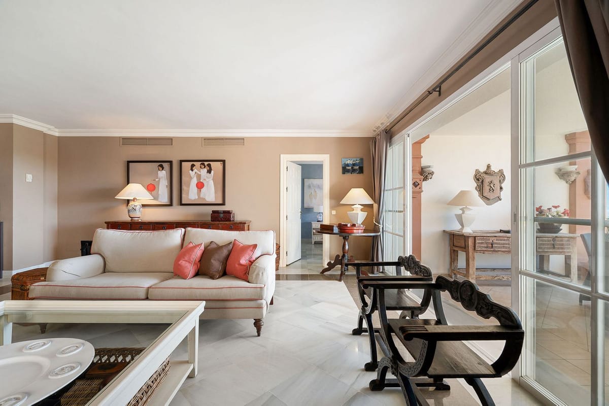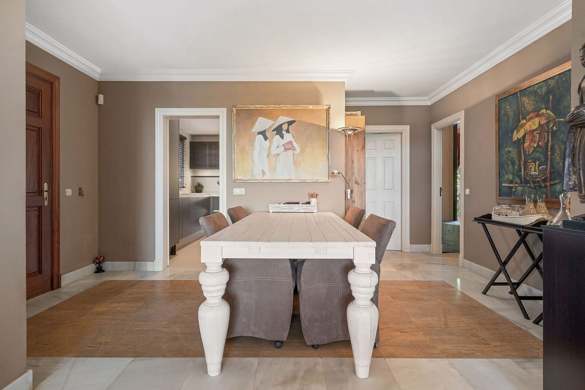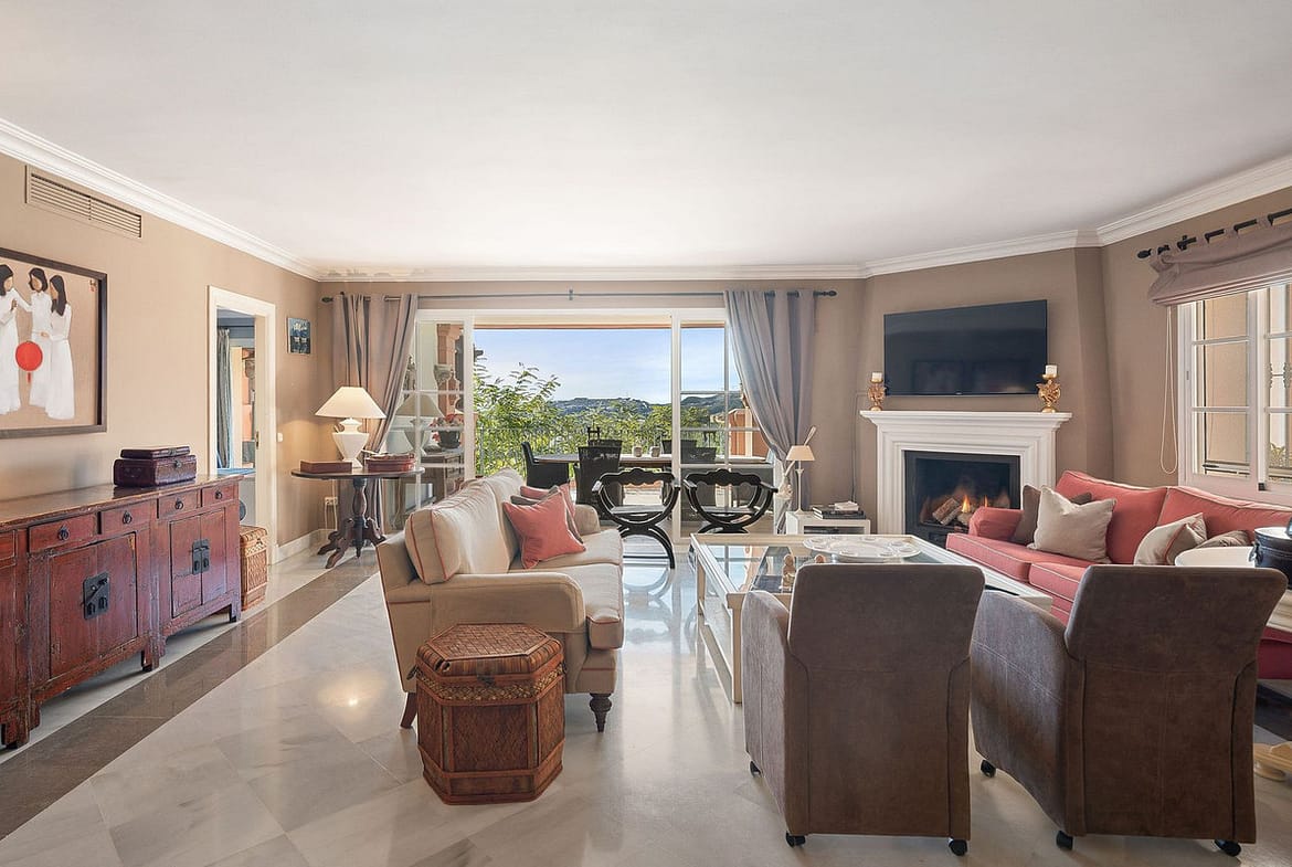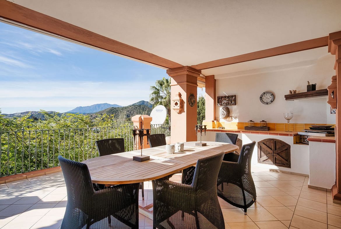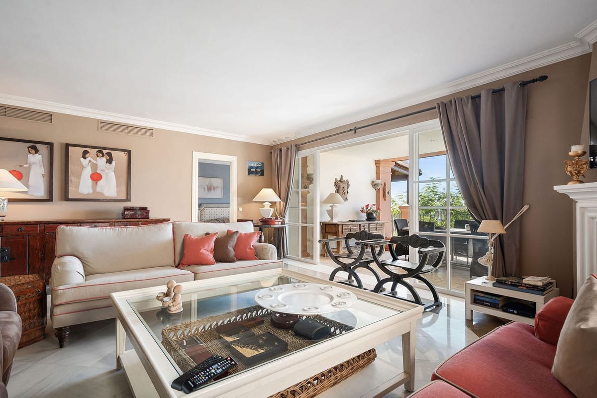 This apartment is for sale in the desirable Monte Halcones community in La Quinta, offering a unique opportunity to enjoy refined coastal living on the Costa del Sol. This elevated ground floor two-bedroom apartment combines classic Spanish design with modern comfort, making it an excellent choice for a permanent residence, holiday home, or investment property. The property sits on an elevated plot and is conveniently close to the Monte Halcones Commercial Center. Here, residents have easy access to boutique shops, cafés, bars, a pharmacy, and a mini-market, all just a short walk away. This location offers a balance between a quiet residential feel and everyday convenience. The apartment offers 145 square meters of interior living space and a spacious 48 square meter south-facing terrace designed for maximum light and outdoor enjoyment. Inside, the large lounge is bright and comfortable, ideal for relaxing or hosting guests. The separate kitchen has been fully renovated with high-quality Bosch appliances and elegant finishes, providing a practical and attractive cooking space. There are two generously sized bedrooms, each with its own en-suite bathroom for added privacy and comfort. The master bedroom opens directly onto the terrace, bringing in natural light and allowing easy access to the outdoor areas. The terrace is a standout feature, offering panoramic views of the Mediterranean Sea and surrounding mountains. With a built-in rustic outdoor kitchen, this space is perfect for outdoor dining and entertaining family and friends. The gated community includes landscaped gardens and a communal swimming pool, creating a quiet and private atmosphere. The apartment also features a large internal storage room, adding convenience and offering potential for further customization. With minimal changes, it is possible to convert the layout into a three-bedroom apartment with an open-plan kitchen, which would increase its value and appeal. Inside, the apartment includes quality finishes such as classic furnishings, marble flooring, and large windows that allow for a smooth connection between indoor and outdoor spaces. The design focuses on practical comfort rather than unnecessary ornamentation. The apartment is a strong option for buyers looking for a well-located, functional, and comfortable home for sale in one of the most attractive areas near Benahavís. It offers a secure, elegant, and flexible living space that suits modern lifestyles on the Costa del Sol.