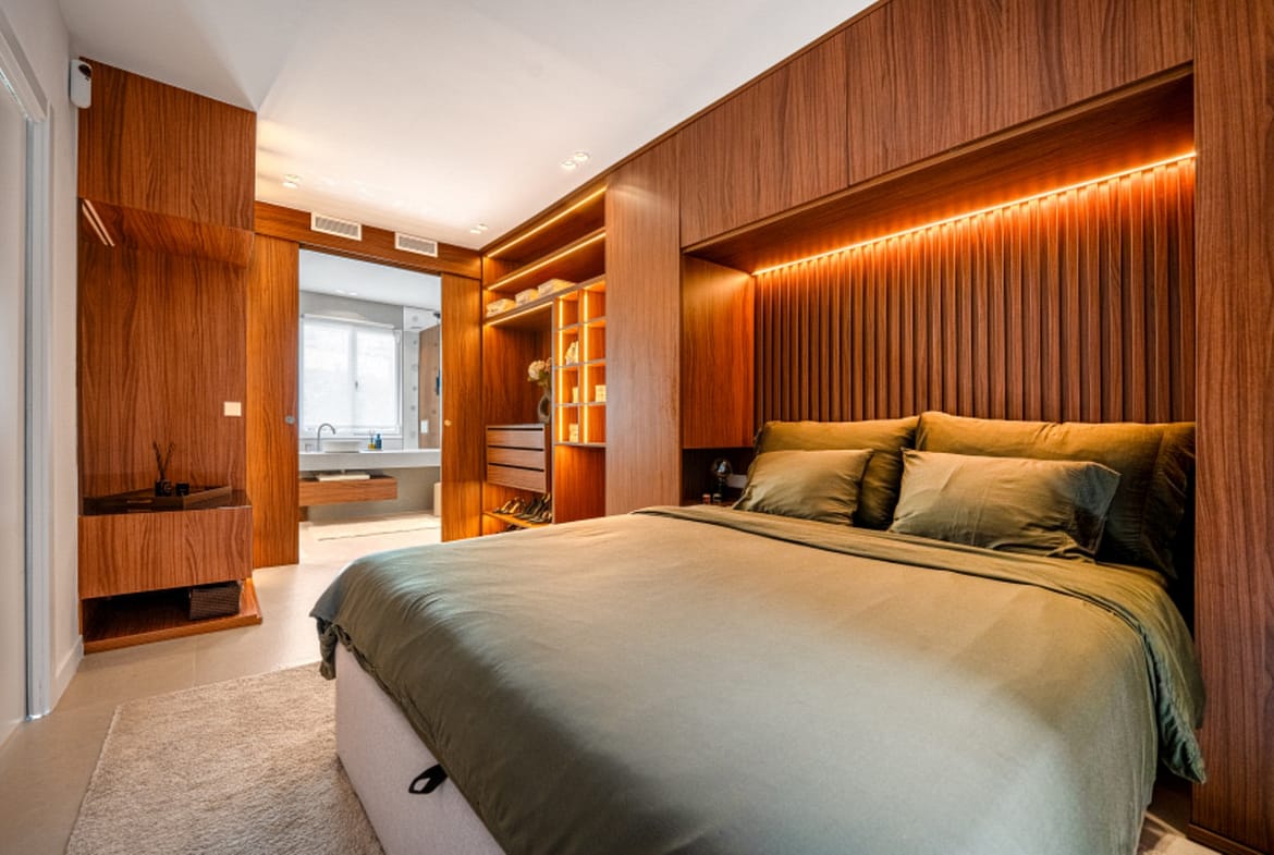 Inside, clean lines and quality finishes define the apartment. Natural textures and handcrafted wooden furniture create warmth and harmony. The kitchen is equipped with premium appliances and a practical design that suits both everyday use and entertaining. Every room feels calm and balanced, following a Scandinavian style that combines elegance with simplicity.