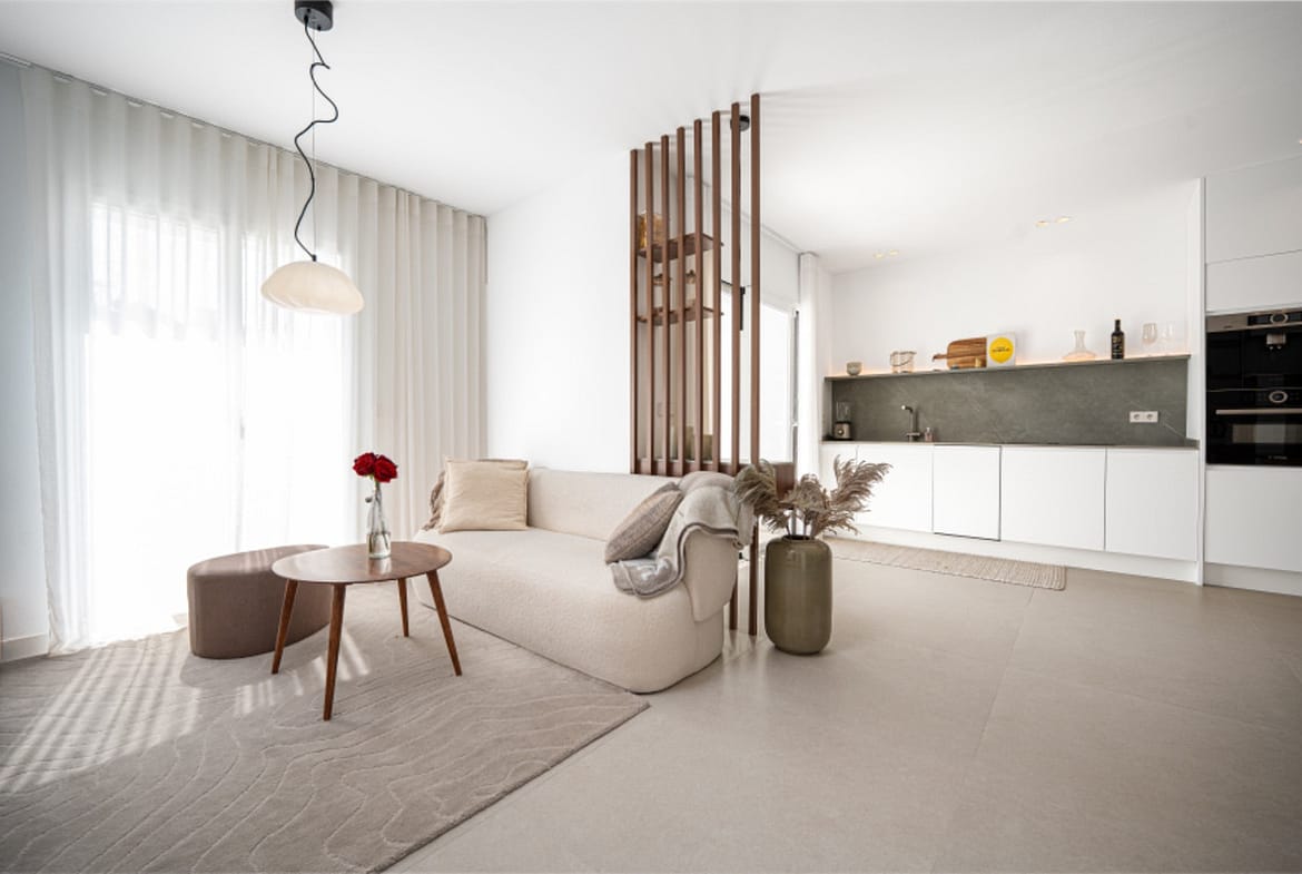 Apartment Oslo is a top-floor residence in La Quinta that offers exceptional views and refined living. The home features two bedrooms and three bathrooms across 110 square meters of space. Every area has been designed for comfort and ease, with an open layout that brings light into every corner. The large south- and east-facing terrace provides a seamless connection between indoor and outdoor living, perfect for relaxing or dining under the stars.