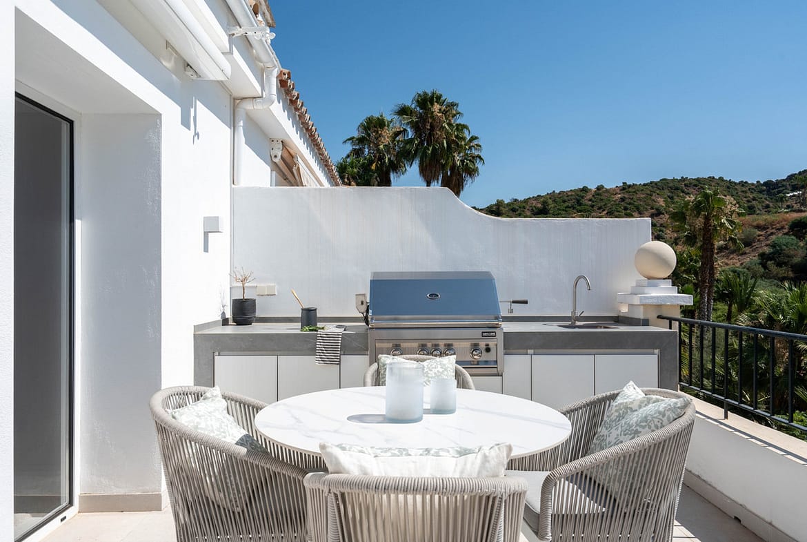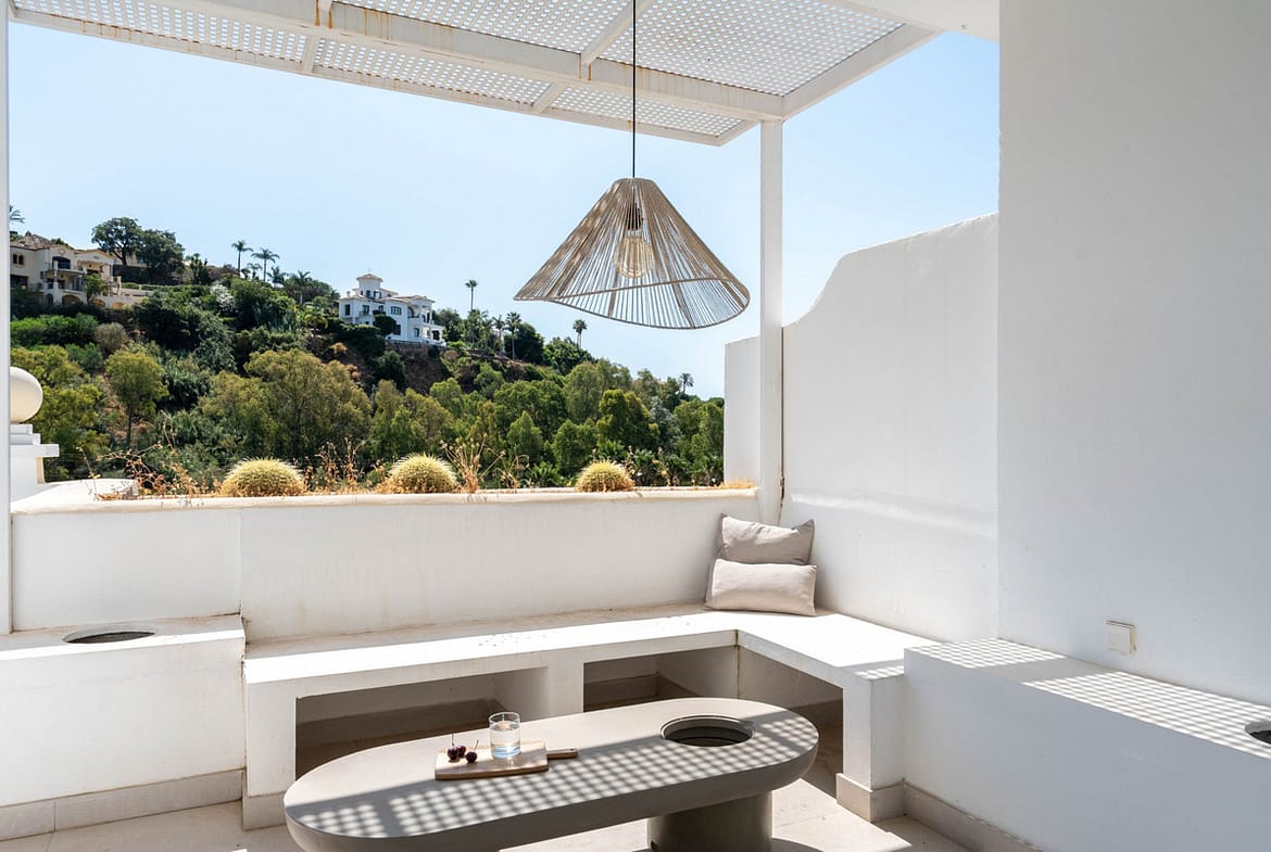 The interior includes two serene bedrooms and three stylish bathrooms, while the expansive terrace—facing south and east—provides breathtaking views of lush landscapes and the Sierra de las Nieves mountains. Ideal for relaxing or entertaining, the terrace seamlessly extends the living space outdoors.