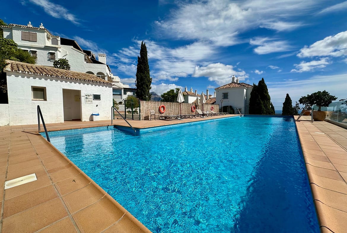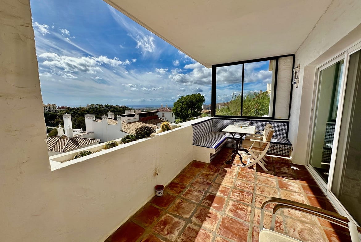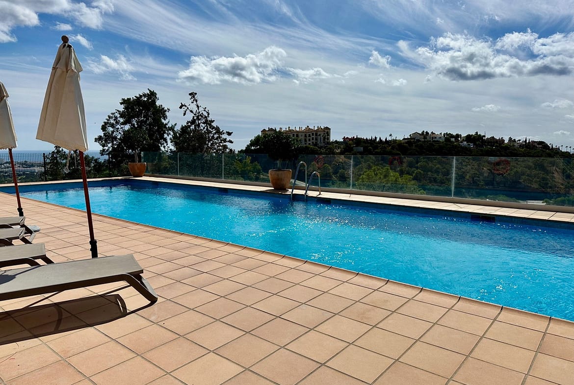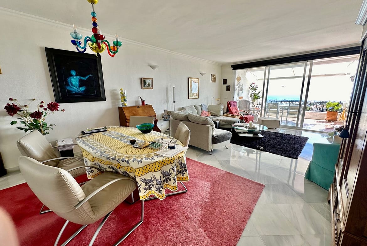 This apartment is located above San Pedro de Alcántara with fantastic sea views. The apartment has an open kitchen, living-dining room, 2 bedrooms, 2 bathrooms and a room that is currently used as an office. The urbanization has a pool area. From La Heredia you can reach the center of San Pedro or the beach in just a few minutes.