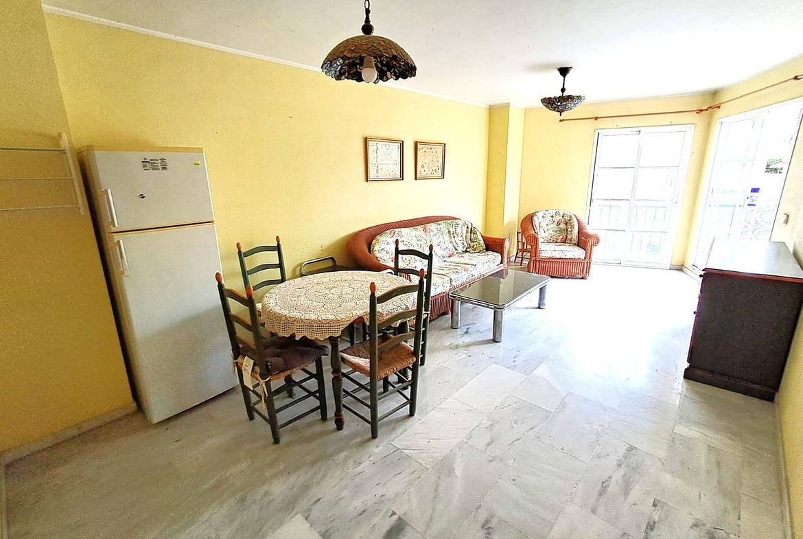 We offer to the market a spacious 2 bed apartment in a sought-after area in Benalmádena Costa. Only 5 minutes walk to the beach and near all important amenities, this apartment offers the opportunity to buy and reform an ideal home. The area, on Avenida de las Palmeras is popular with tourists and Spanish residents alike, who are attracted by the lively atmosphere and facilities available.