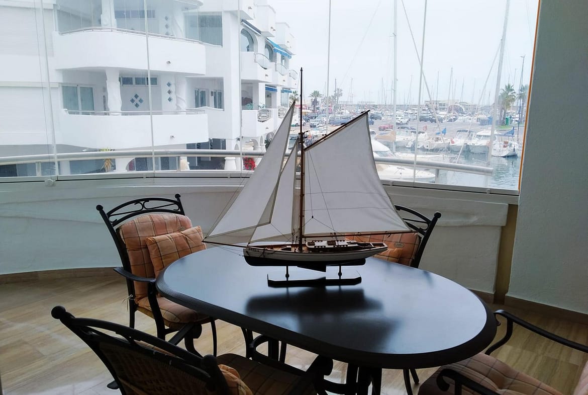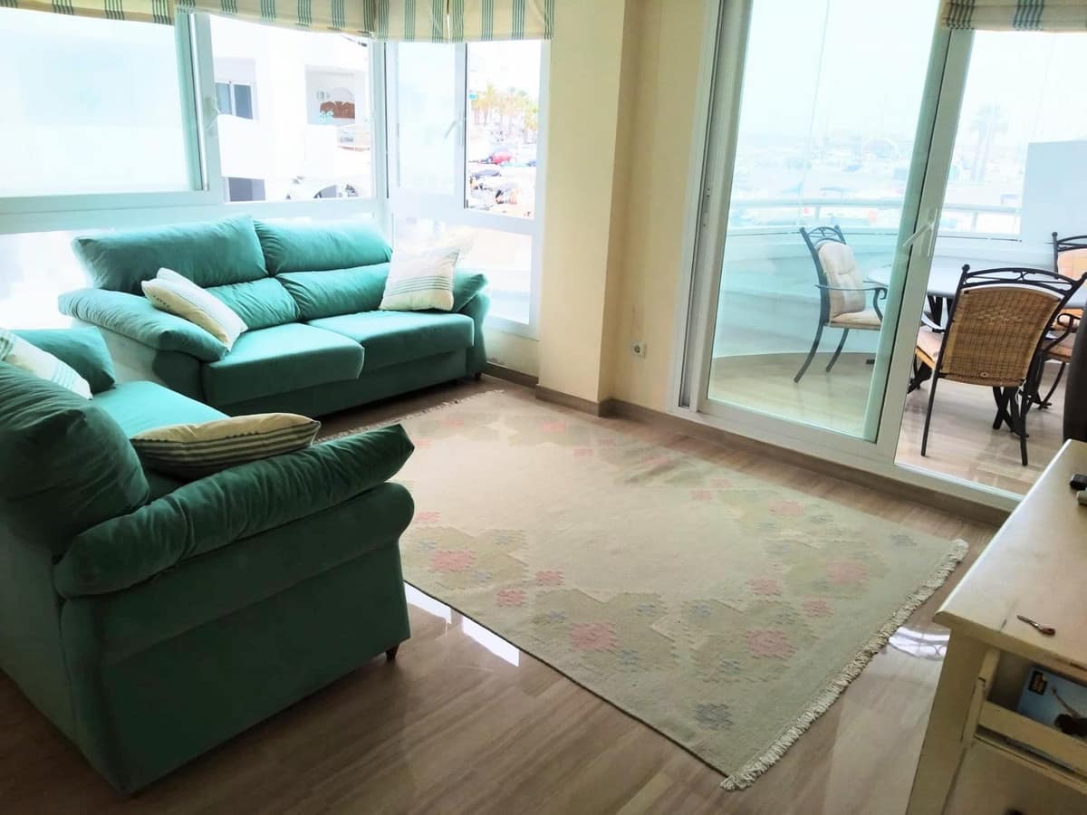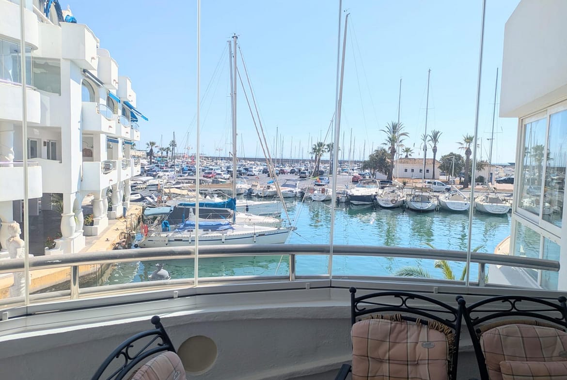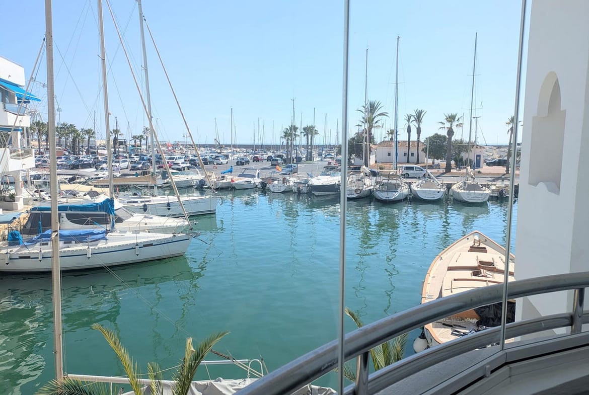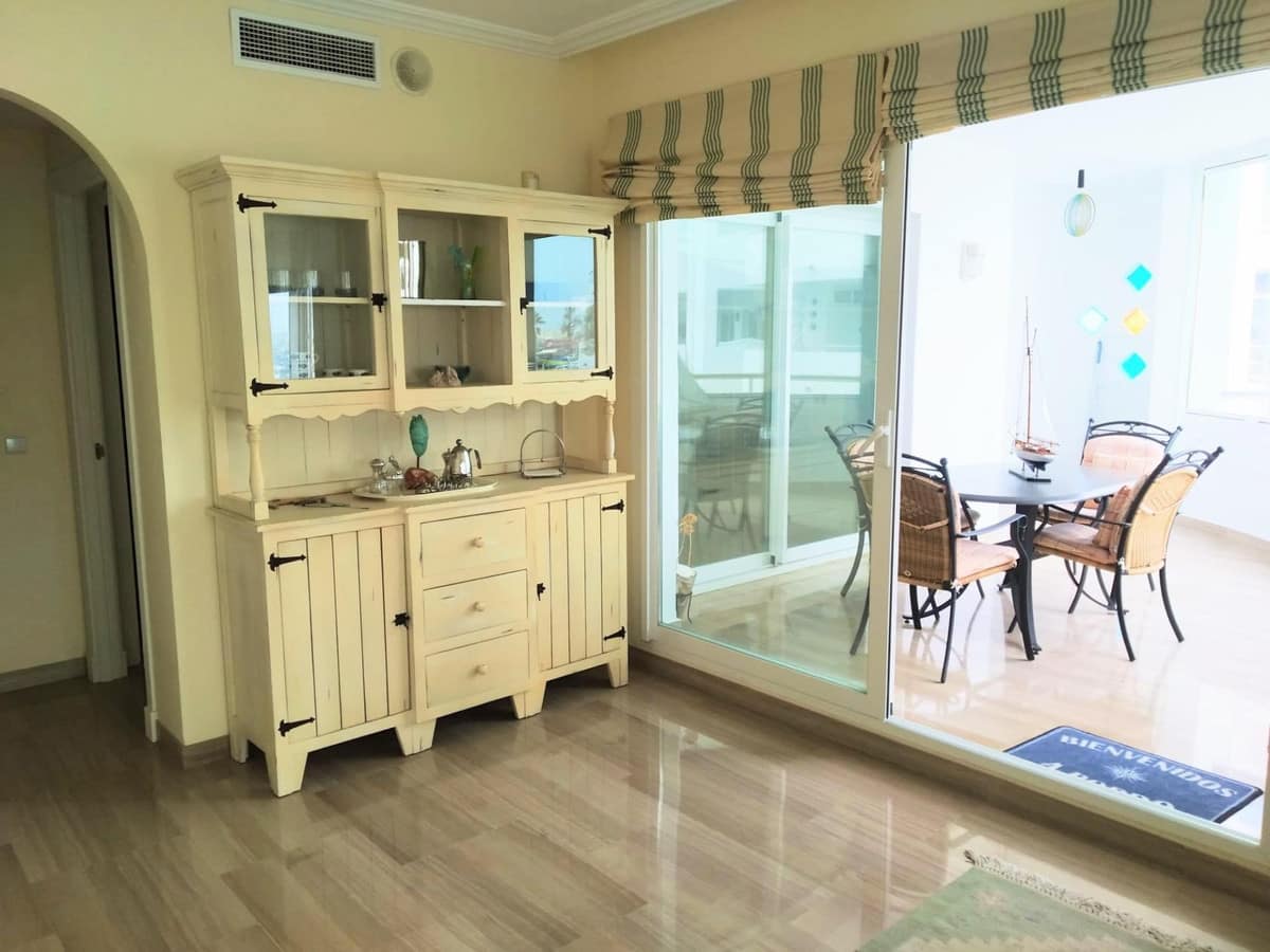 Apartment for sale in the best location in Benalmádena – The Islands in Puerto Marina. Beautiful views of the port and the sea. 2 bedrooms, 2 bathrooms, living-dining room, equipped kitchen and 2 large terraces. Air conditioning, fitted wardrobes and fully furnished. In a building with elevator, large pool and rooftop solarium. Private garage space and storage room not included in the price. Great opportunity, won't be on the market for long!