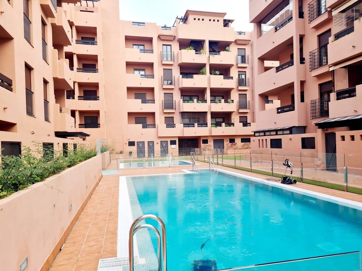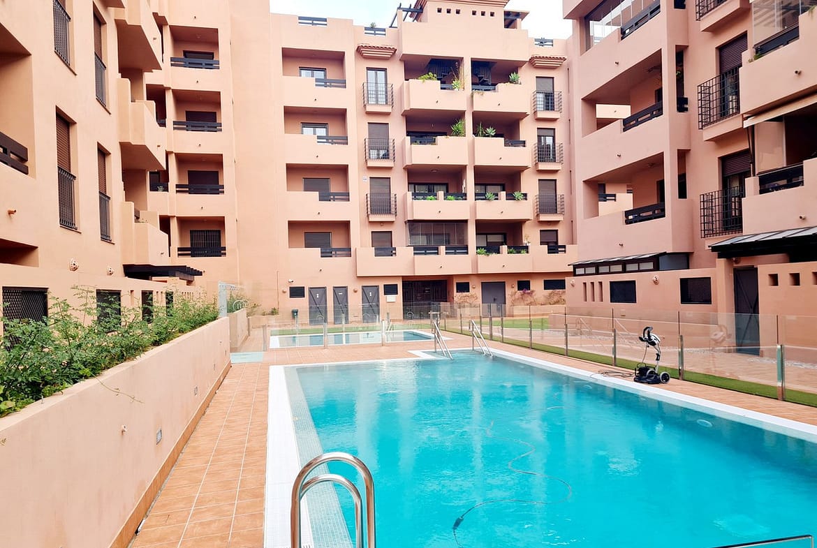 New-build apartment for rent in an established residential area in Arroyo de la Miel, Benalmádena, close to all amenities: health center, hospitals, schools, supermarkets, entertainment, restaurants, and commuter trains. We offer a spacious 108m² home with 2 bedrooms and 2 bathrooms in this exclusive private residential complex. It features a fully fitted and equipped kitchen, parquet floors, built-in wardrobes, elegant finishes, and an optimal layout. The spectacular communal areas with swimming pools and gardens make this development a unique place to live. The home is rented unfurnished. The price includes 2 parking spaces and a storage room.