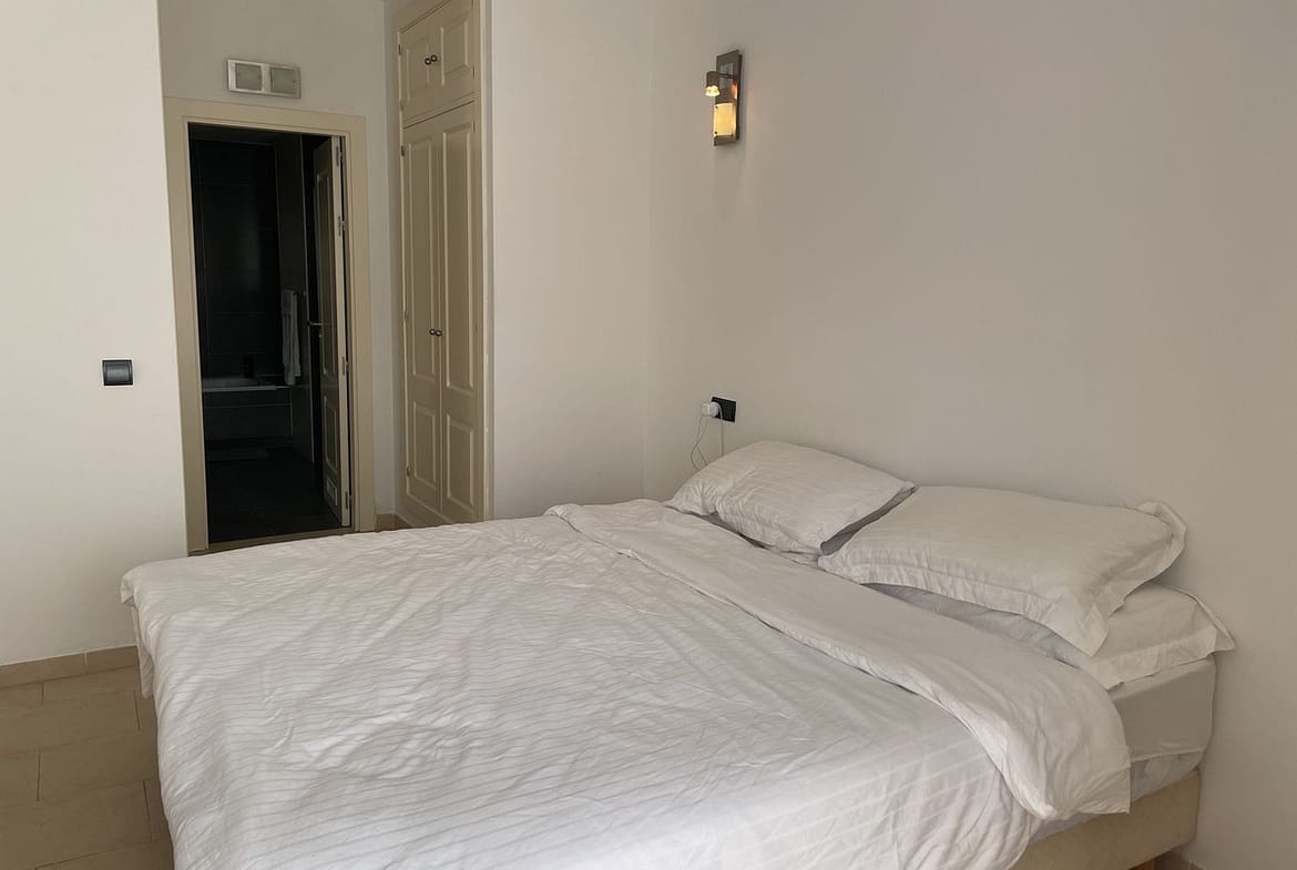 Inside, you’ll find a spacious open-plan living area, connected to a fully equipped, modern kitchen. Natural light floods the space through large patio doors, leading directly to the terrace and creating a seamless flow between indoor and outdoor living.