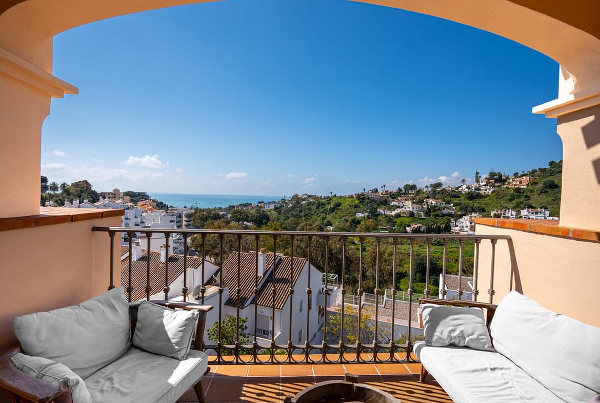 This penthouse is a 2 bedroom 2 bathroom duplex penthouse just 1 km from the beach. The home features open plan living spaces with bright interiors and large terrace windows. The kitchen overlooks the lounge and dining area through an elegant archway. The first terrace offers beautiful sea views. The property includes 2 private parking spaces and a dedicated storage room.