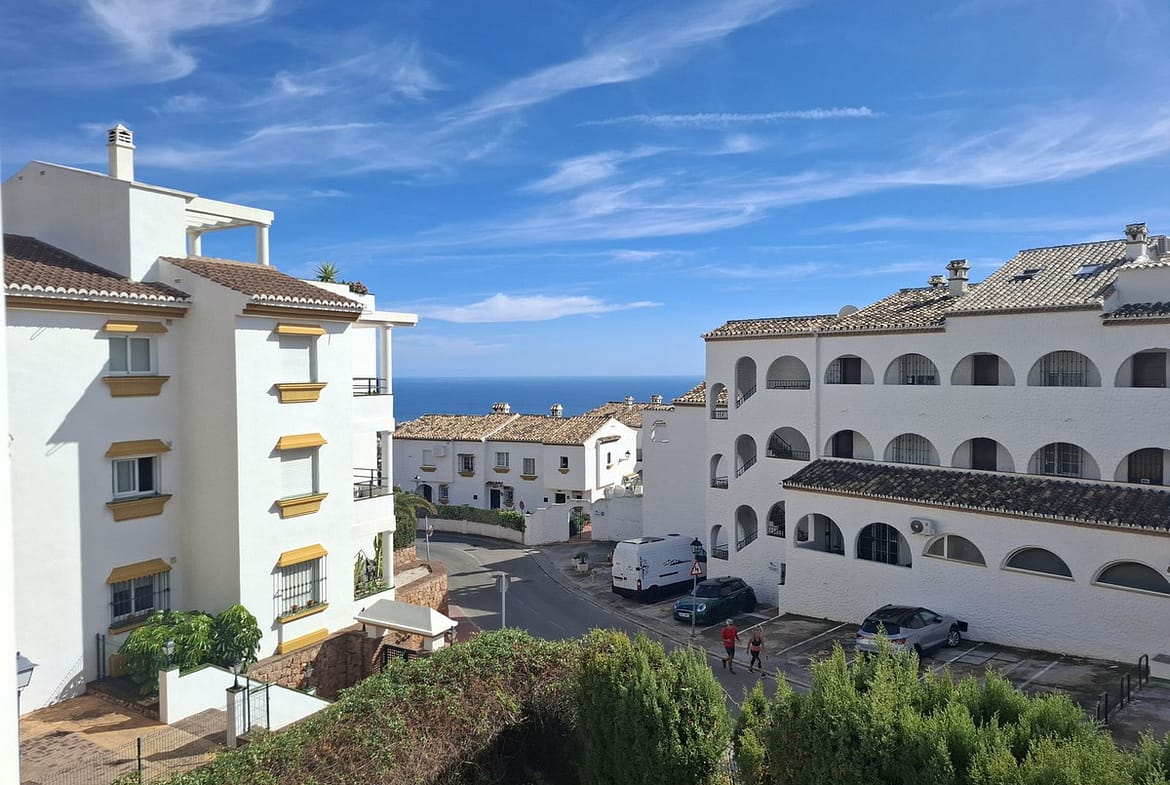 Residential complex with gardens and community pool, located in a quiet area between the Buddhist Stupa and Colomares Castle.
