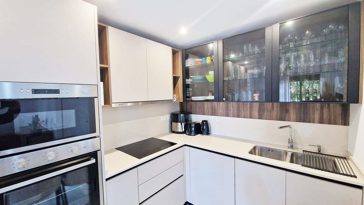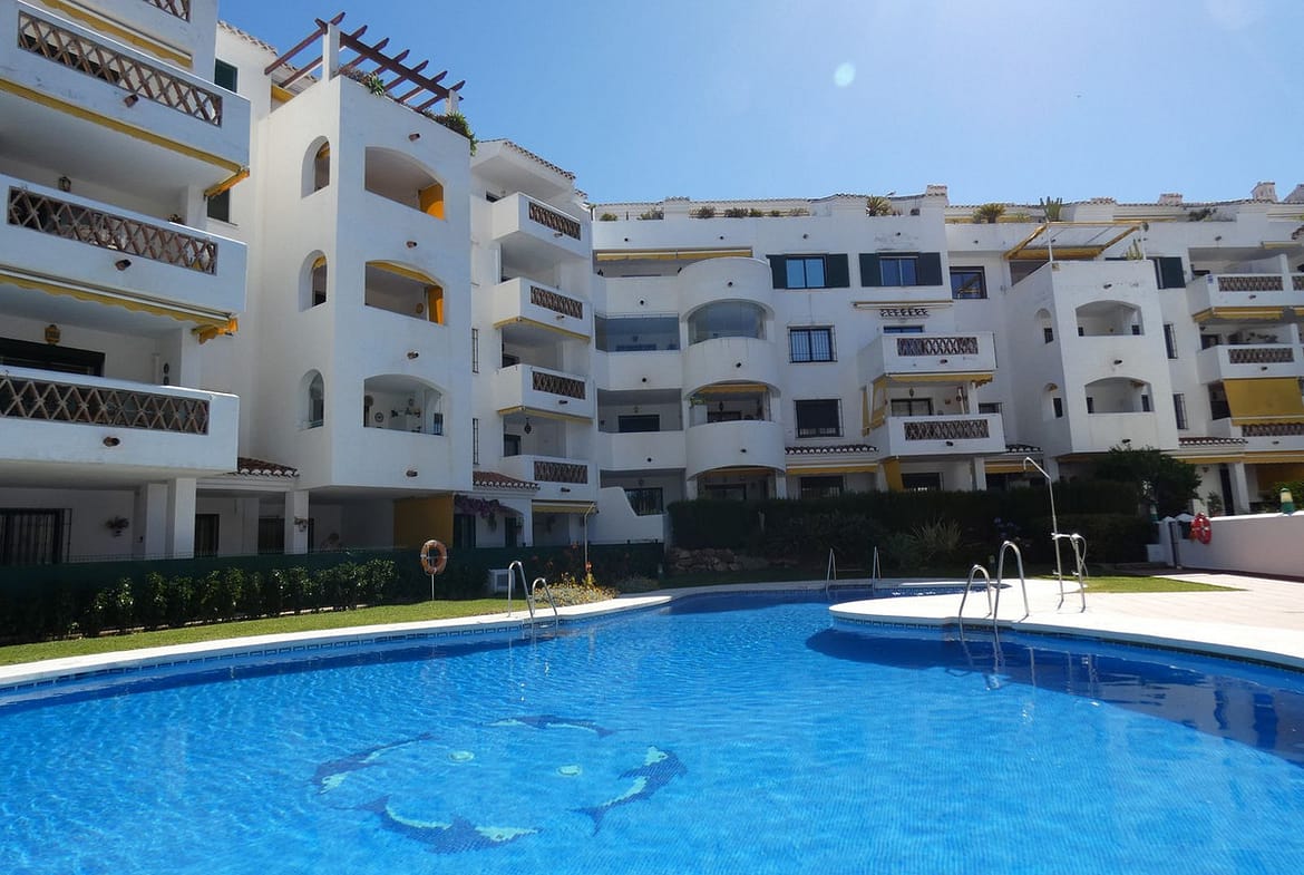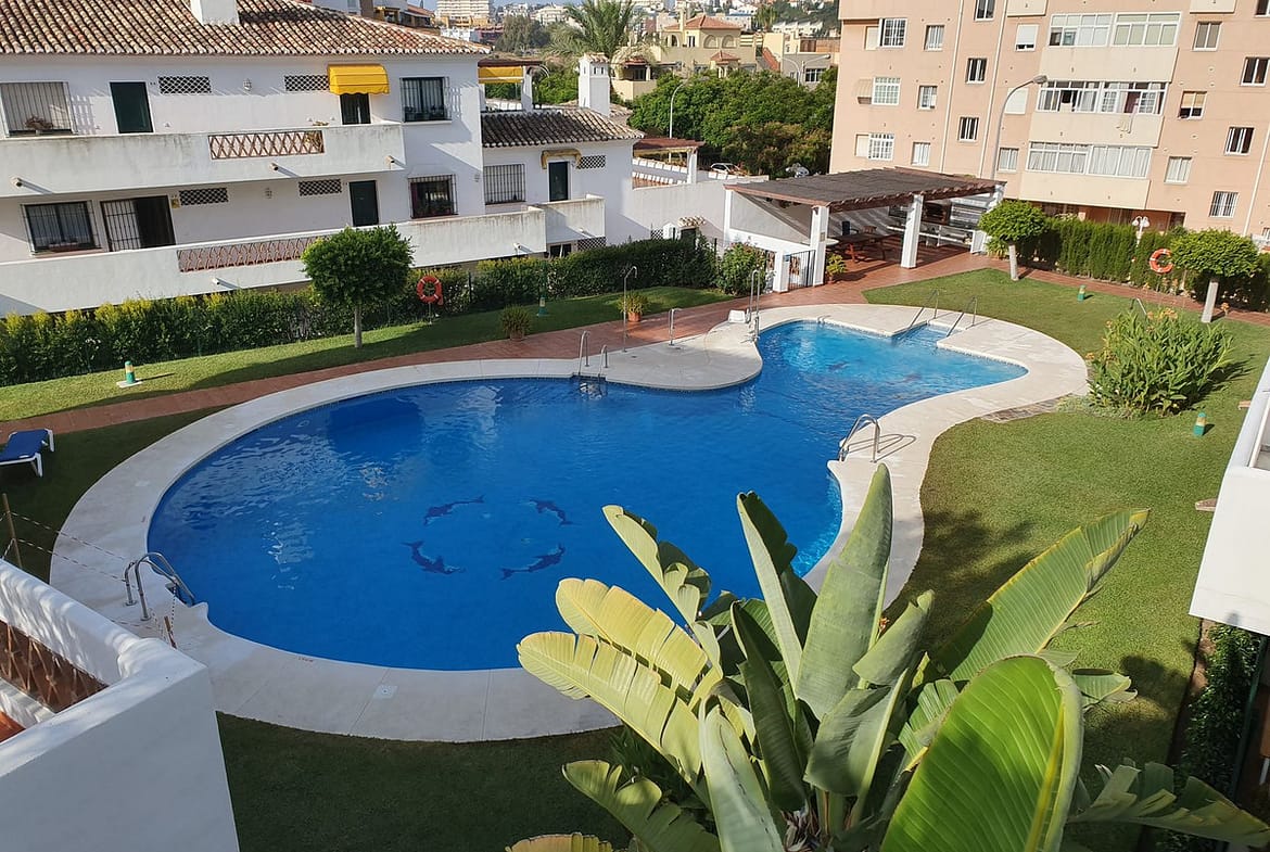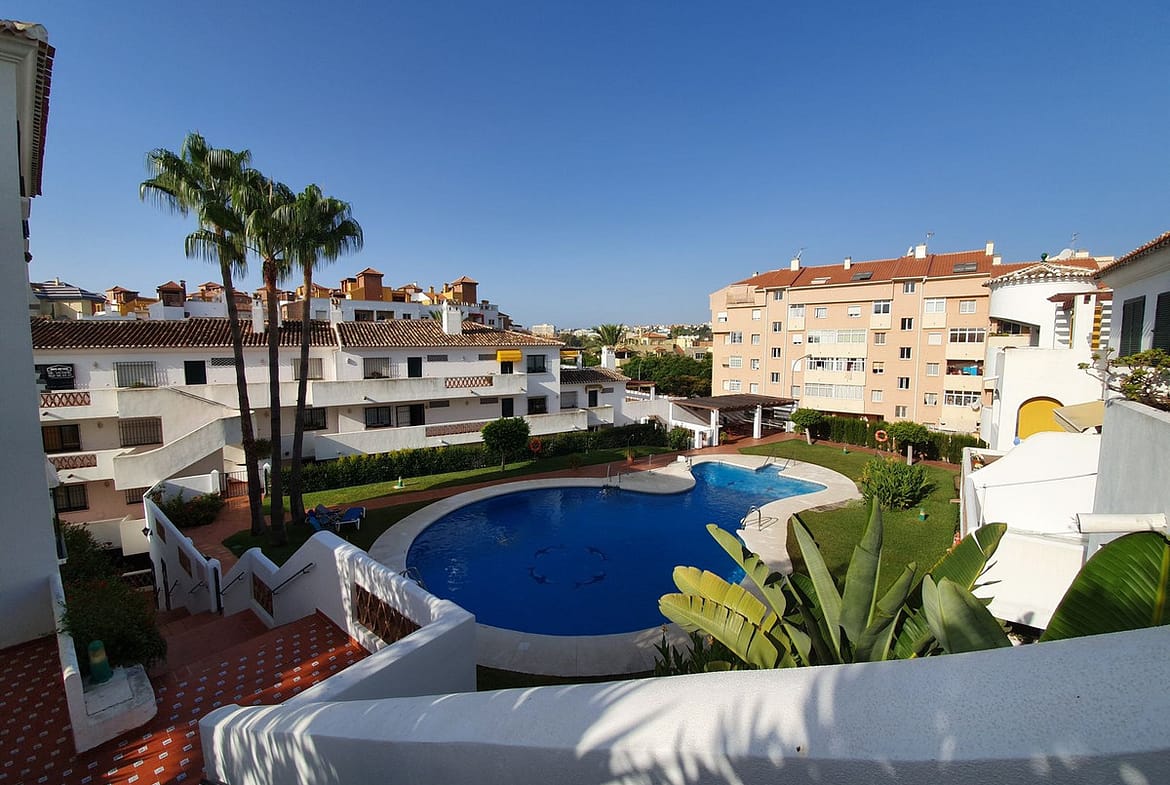 Fantastic location! By Paloma Park, fantastic apartment, totally very tastefully refurnished recently. Originally, it was a 2 bedroom apartment which has been converted in a 1 bedroom. It would be very easy to converted it back to the way it was by adding a sliding door or doble doors. It is located in a charming well kept Andalusian style complex, with 2 swimming pools, well maintained gardens. 7 minutes walk to the center of Arroyo de la Miel and the train station, 7 minutes walk to the Benalmadena beaches, promenade, beach bars etc.. Shops, public transports, all the amenities are very close. The property consist of a hall way with a storage cupboard, a full bathroom with a window, a large bedroom with fitted wardrobes. Beautiful open plan kitchen, large lounge with opens to a large 15m2 west orientated terrace . La vivienda se vende totalemente amueblada.The property is sold fully furnished, to a high standart. Very quiet environment, yet close to everything. Malaga airport 15 minutes by car.