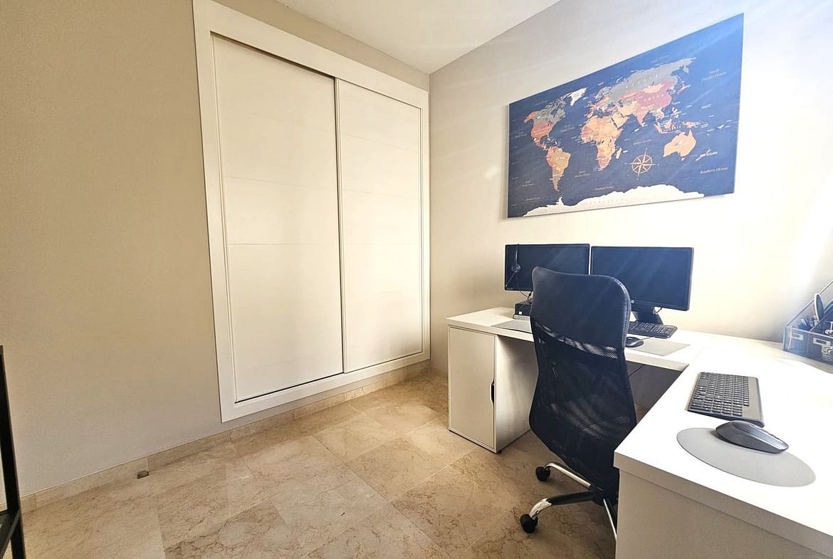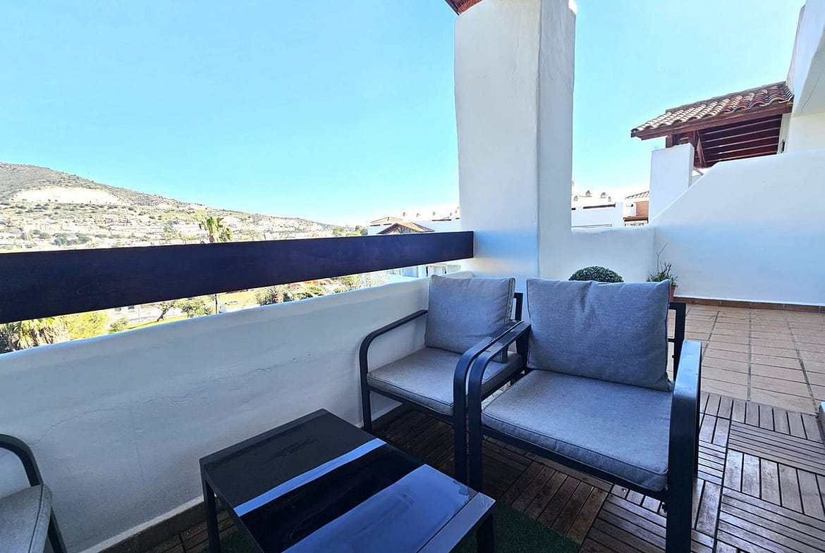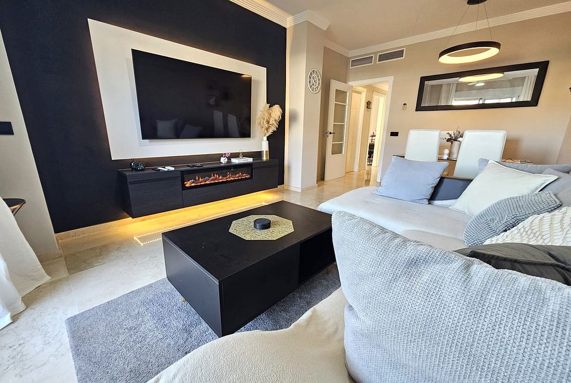 The apartment is set in a peaceful area surrounded by green spaces and golf courses, within a well-regarded residential complex known for its quality of life and close proximity to all local amenities, shops, and main transport links.
