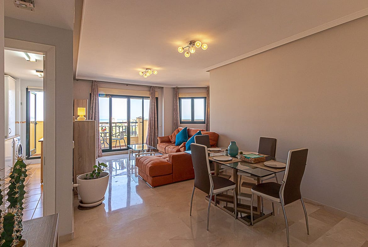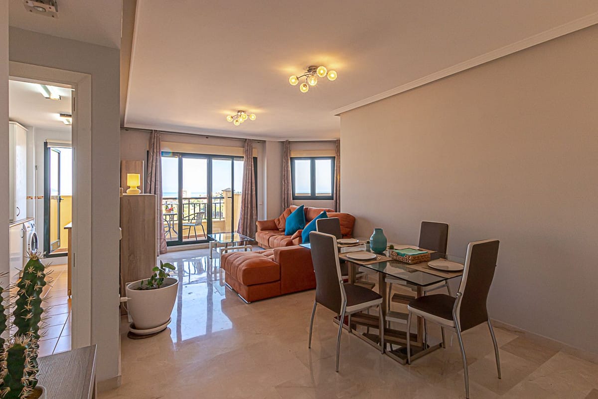 “Luxury apartment with panoramic sea views. This impressive 2-bedroom, 2-bathroom apartment is located in Finca Doña Maria. The property is laid out over a large living room with access to a terrace with panoramic sea views, perfect for enjoying the sun.