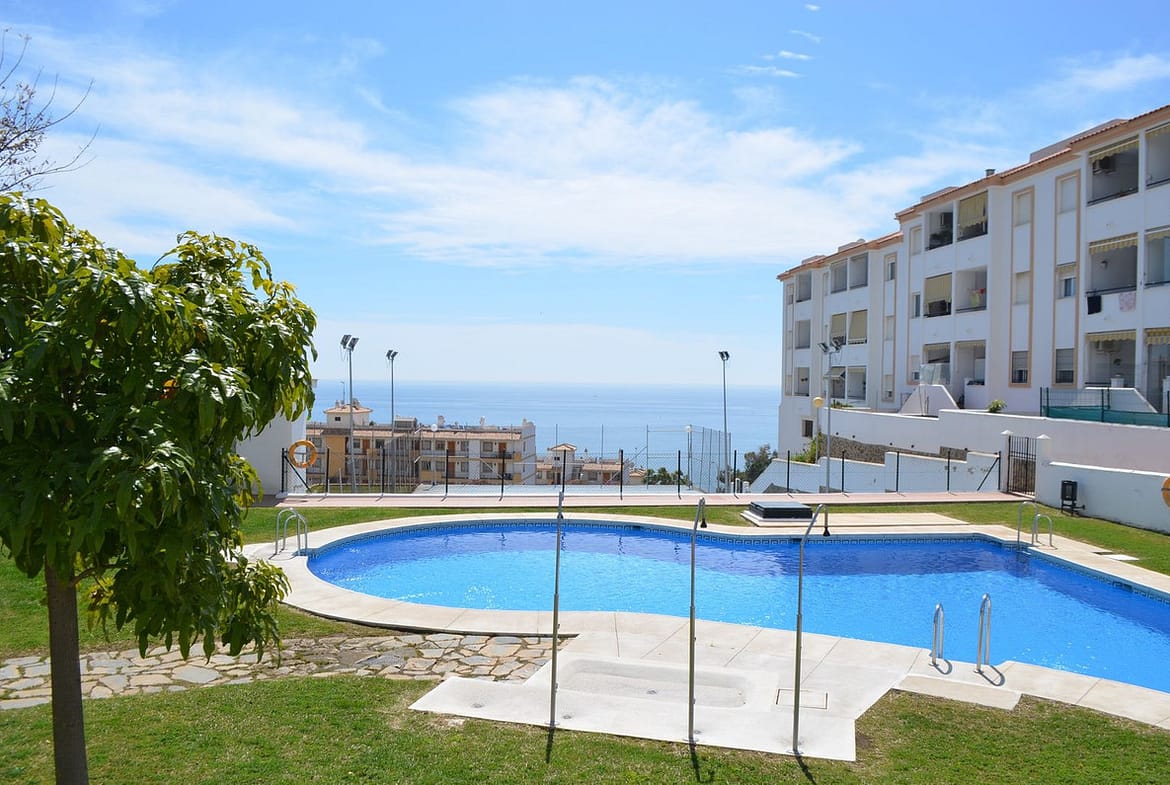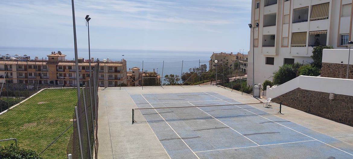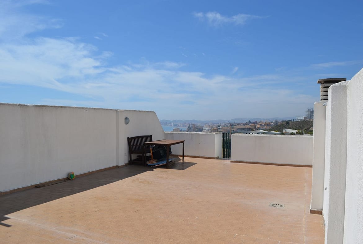 Spectacular penthouse just 800 meters from Carvajal Beach, featuring an upper terrace, two bedrooms, and a bathroom. Gated complex with a swimming pool, extensive communal gardens, and a tennis court. West facing.