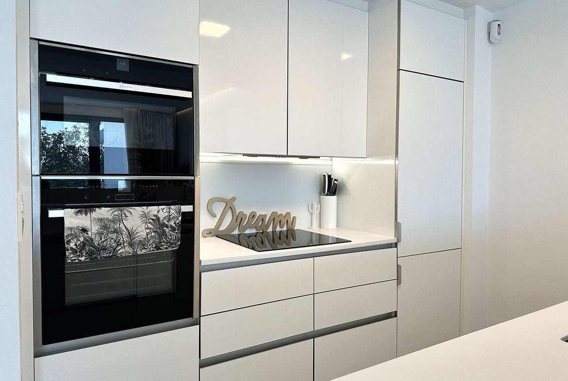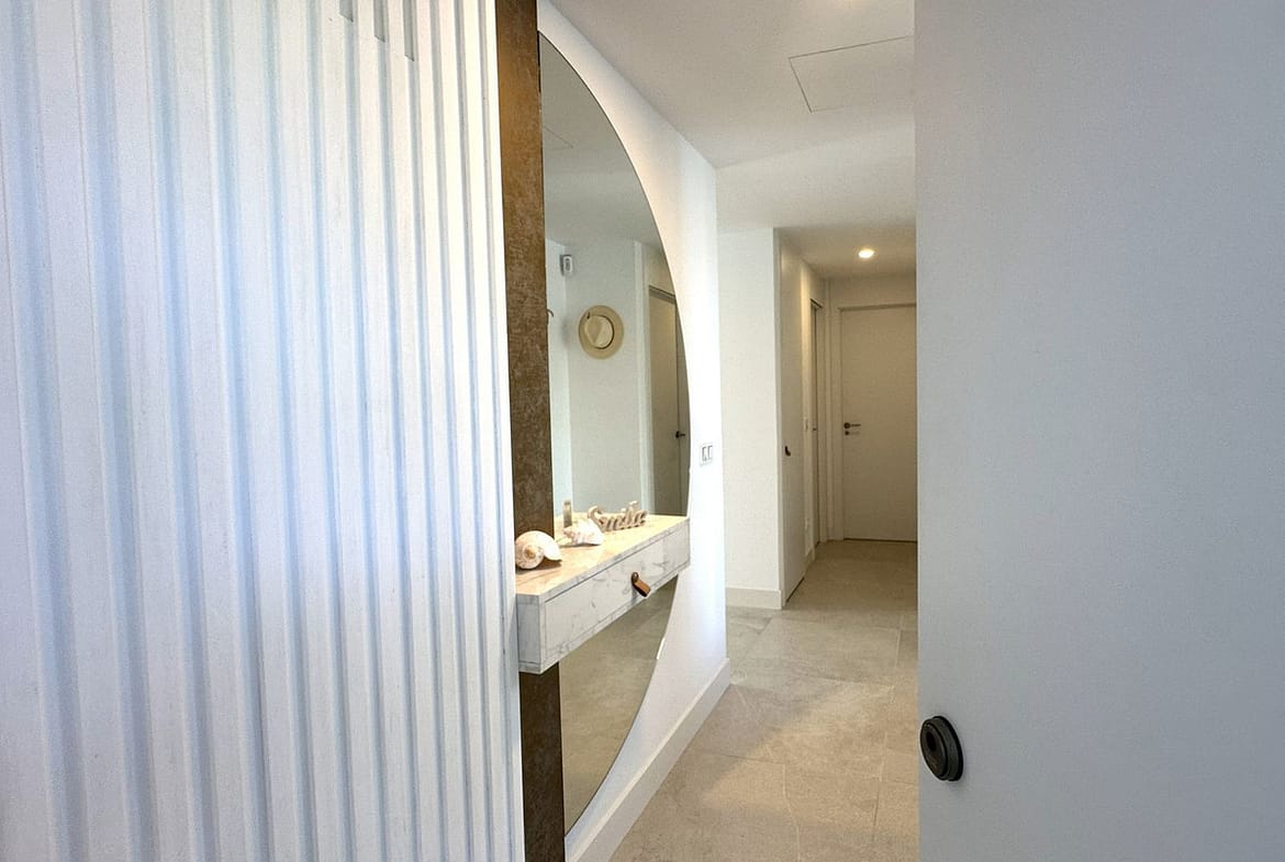 Inside, distributed into 2 bedrooms, 2 bathrooms, and a terrace, upon opening the door, we find a beautiful, very bright entrance hall that first leads us to a fully equipped and highly functional open-plan kitchen connected to the large living room, which stands out for its minimalism and the brightness provided by the large windows leading to the apartment's first terrace. This terrace, equipped with outdoor tables and chairs, a Balinese armchair, and a chill-out area, is ideal for spending a lot of time outdoors and enjoying summer nights. Returning to the entrance, we also head towards the apartment's beautiful master bedroom with an en-suite bathroom and direct access to the outdoor terrace, as well as the second bedroom and the general bathroom of the house.