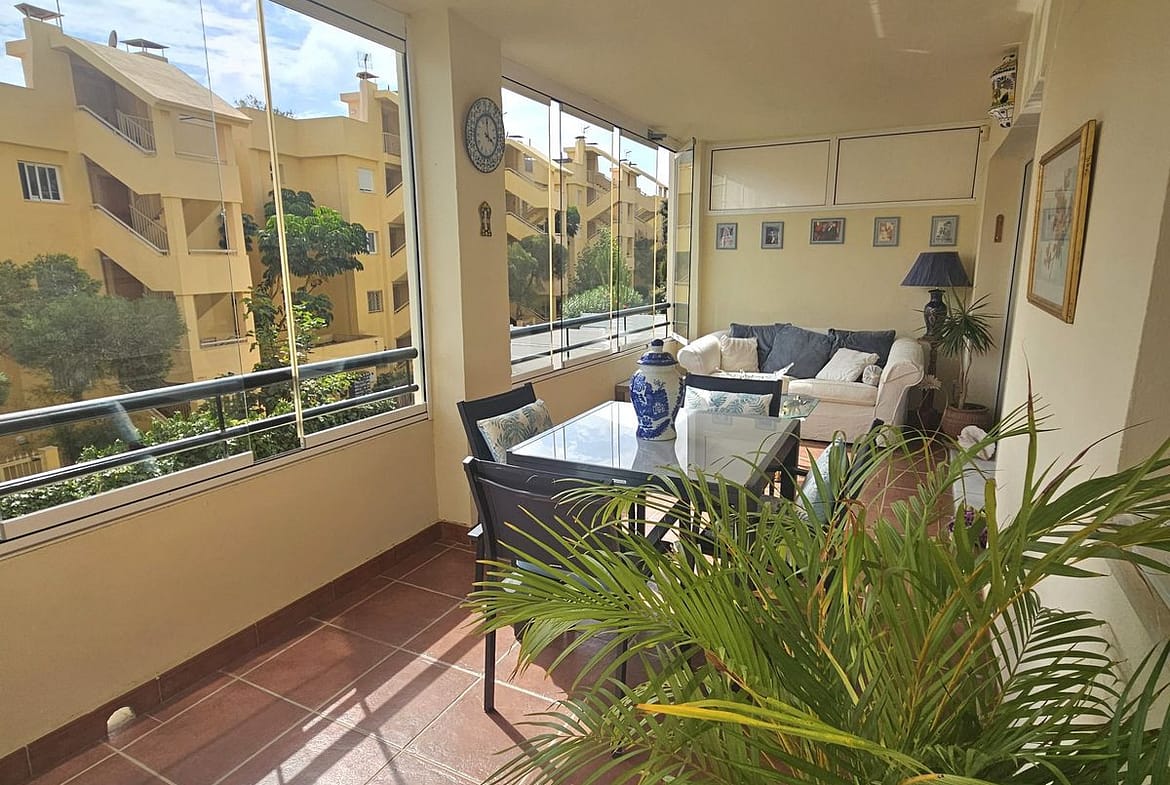 This bright and spacious corner apartment offers 2 bedrooms and 2 bathrooms, positioned on the first floor with great sea views. Just a short five-minute stroll takes you to the beautiful sandy beach called 'La Luna' in Calahonda, the start of the scenic seafront promenade, and a vibrant commercial centre with supermarkets, shops, and restaurants.