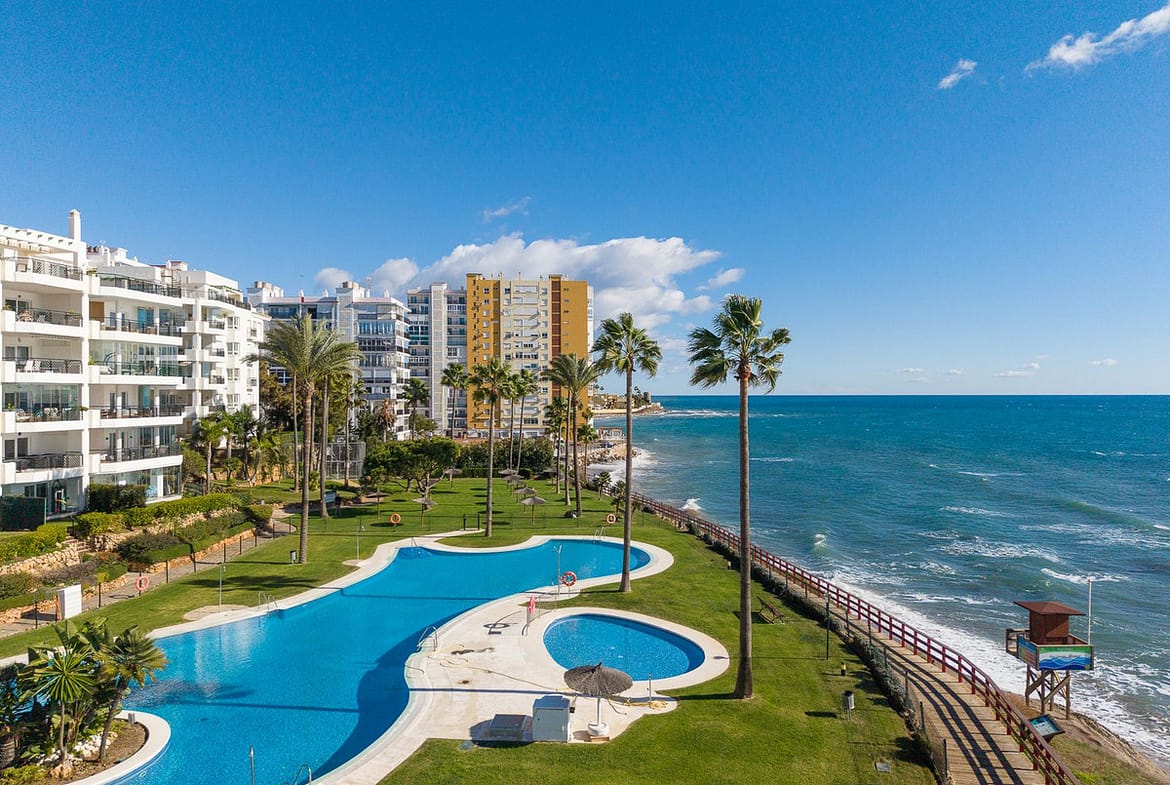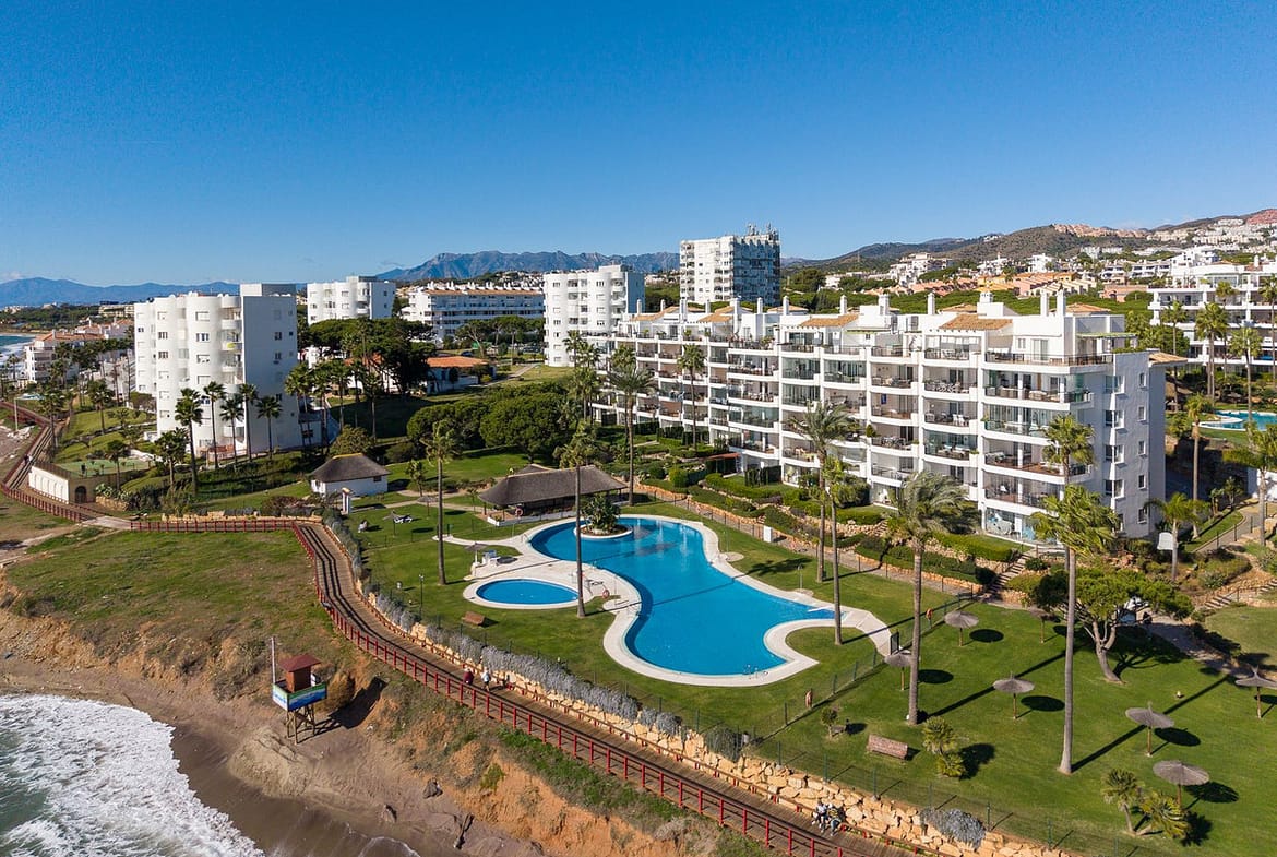 We are delighted to present this beautiful 2-bedroom, 2-bathroom beachfront apartment, ideally located in the prestigious and well-established Mi Capricho urbanisation in Sitio de Calahonda, Mijas Costa. Set within an exclusive gated community with direct access to the promenade and beach, this property offers an exceptional blend of lifestyle, comfort, and investment potential on the Costa del Sol.