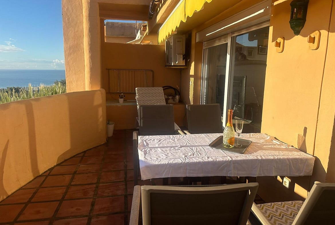 The property offers 96 m² of built area, distributed into 2 spacious bedrooms and 2 complete bathrooms, providing a comfortable and functional living space. The living room is bright and generously sized, with direct access to a lovely private terrace with sea views, perfect for outdoor breakfasts, relaxing moments, or enjoying the mild evenings of the Costa del Sol.