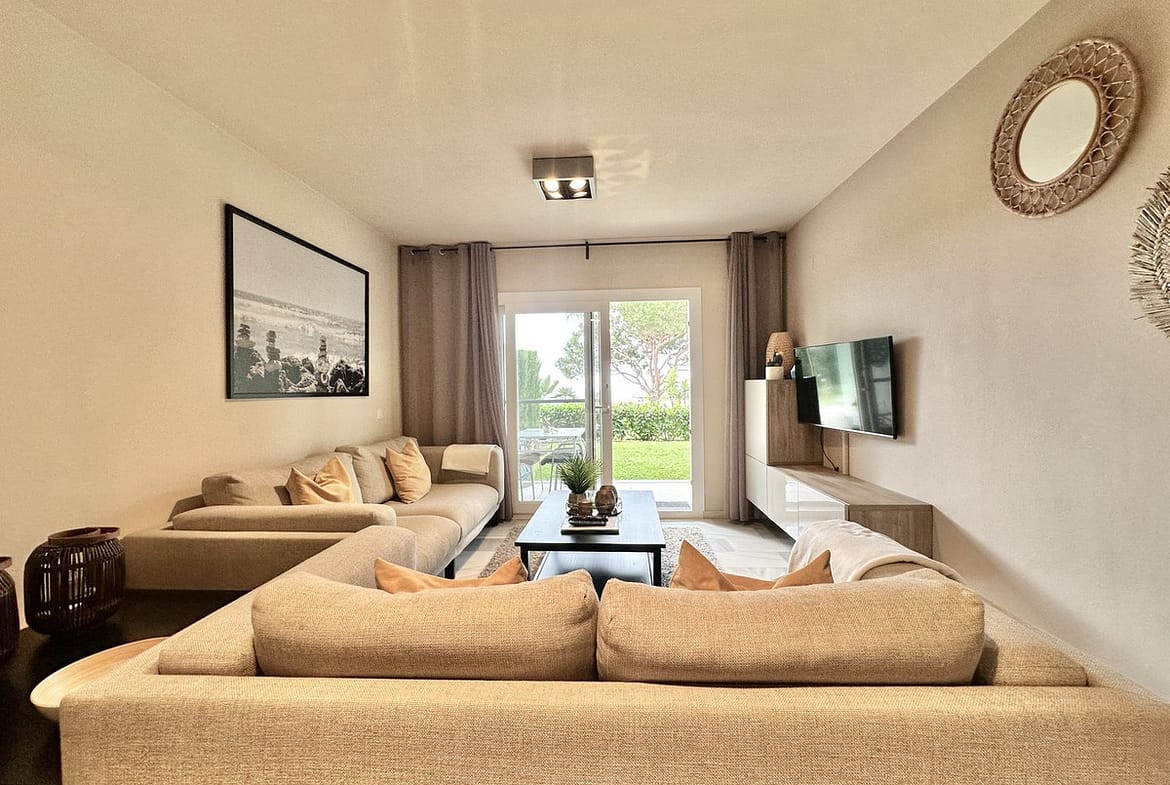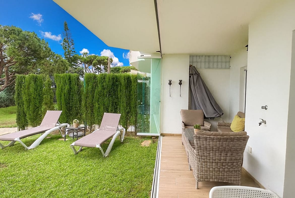 From the living room, step directly onto your private terrace, through the private garden, and straight to the pool. Just 50 metres further is the beach. The apartment faces the sea, providing open views and an unbeatable atmosphere.
