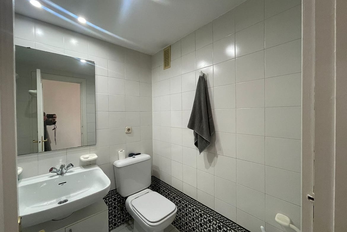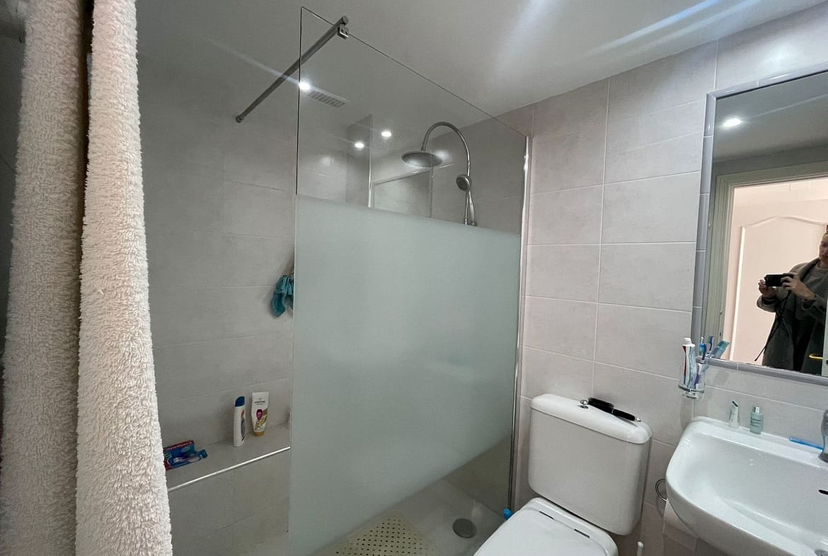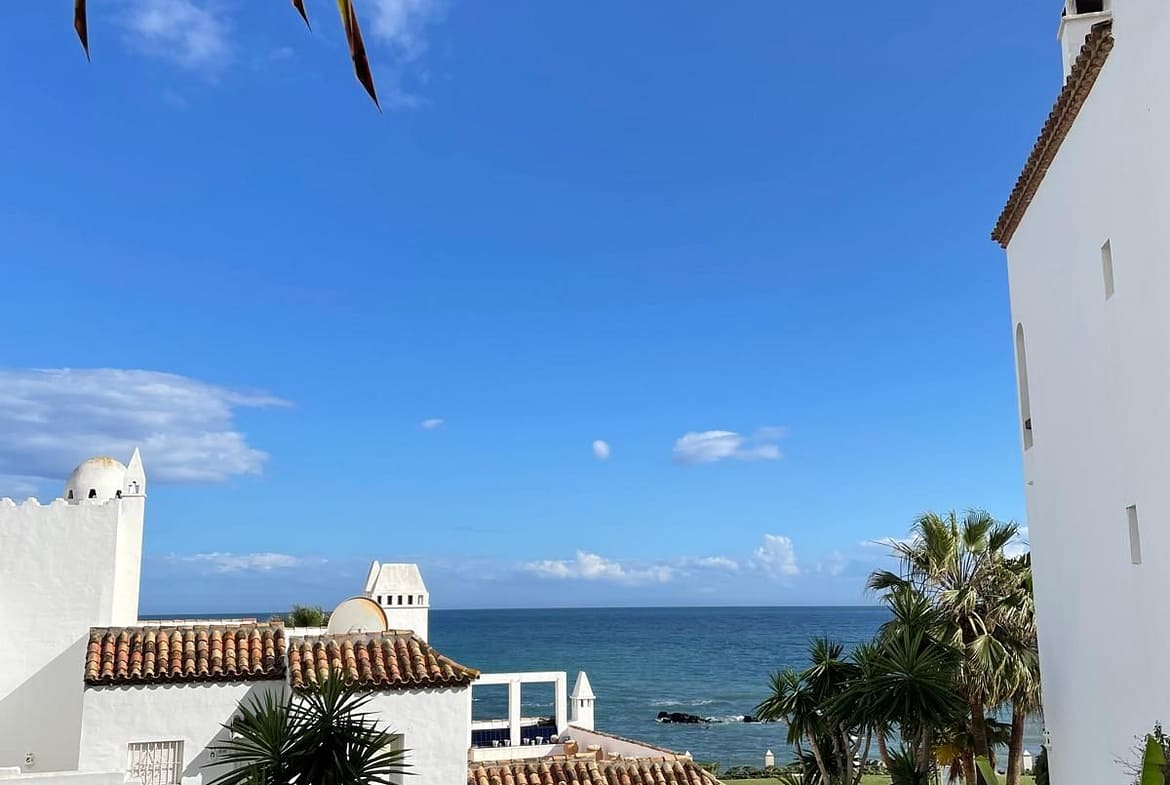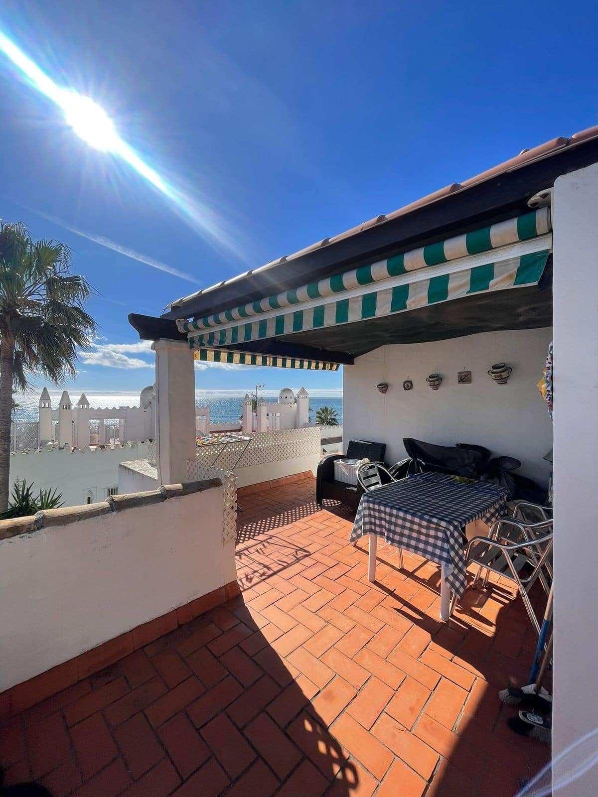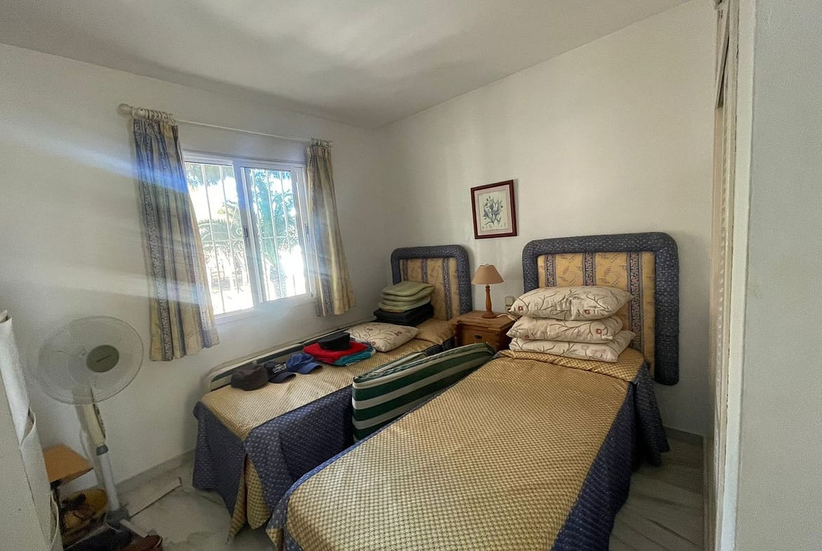 Corner penthouse for sale in one of the best beachfront developments in Mijas Costa, Calahonda. The apartment is on the first floor (no lift) and has 2 exterior bedrooms and 2 full bathrooms (with the possibility of easily converting it into 3 bedrooms), with a large corner and private terrace. From the apartment there is an impressive sea view, from the kitchen, living room, bedroom and terrace. The apartment is sunny all day, especially in winter when the sun is lower. There is new air conditioning (split, hot and cold) in the living room and in the master bedroom. The kitchen is large, exterior with a window and fully equipped, with a serving hatch that opens onto the dining area. The dining room and living room are spacious and sunny. There are built-in wardrobes in both bedrooms. There is a private parking space included in the price. It is a gated community with communal gardens and a large swimming pool facing the sea. You can exit through the community directly to the beach and can walk easily to several restaurants, beach bars, supermarket, pharmacy etc. We have refurbished several apartments of a similar size in the same urbanization for our investors from 2 bedroom to 3 bedroom apartments and we can show you before and after of those units, and you can visit them personally to get an idea of what can be done.