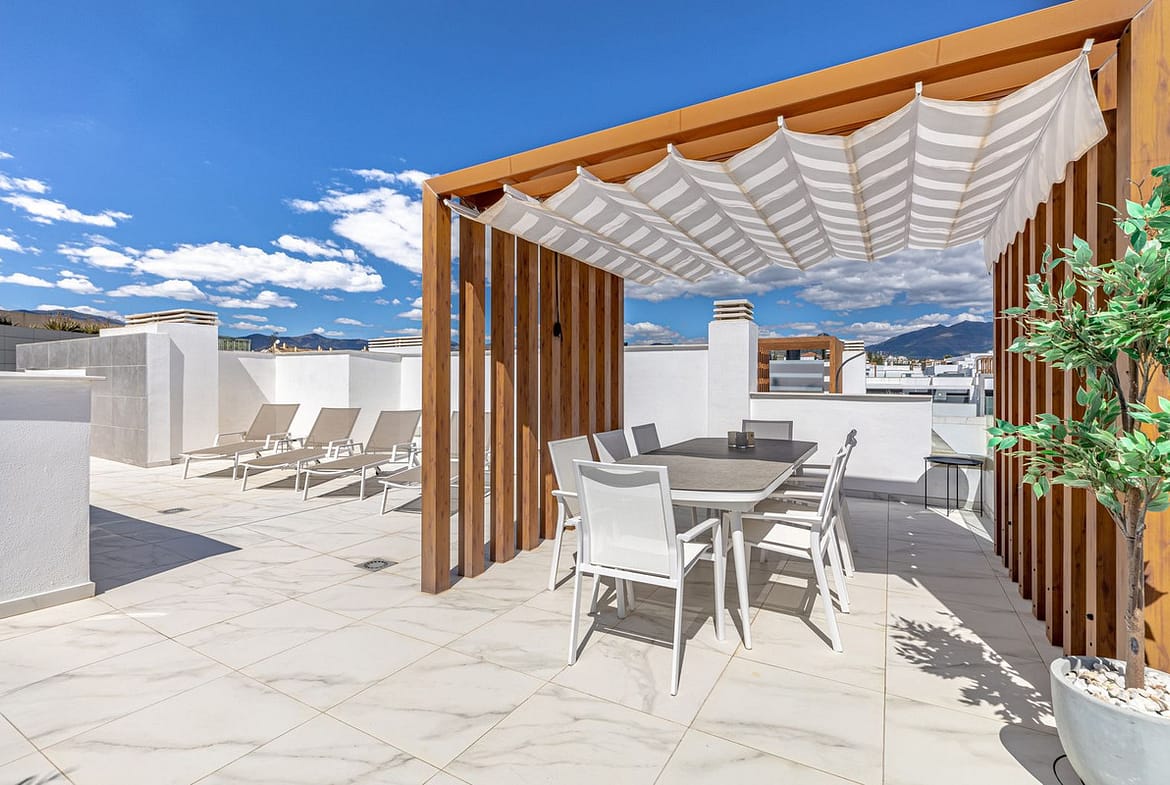 This modern and stylish apartment in Cancelada, perfectly located between Marbella and Estepona, offers a fantastic rooftop terrace and prime location! Built in 2020, the property includes two garage spaces and a storage room. Restaurants, shops, supermarkets, and the beach are all within walking distance.