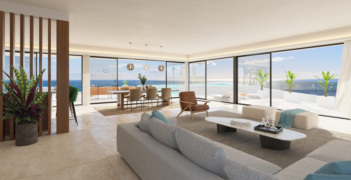 A new concept of housing that will make a difference. It has transformable interiors to be able to enjoy the stay in a unique space. We go beyond the classic open concept of living room, kitchen and dining table. We added the space of the main room, through sliding walls, with the aim of obtaining the greatest possible feeling of spaciousness through a greater width of the spaces. Without forgetting the guaranteed sea views, privacy, large terraces and sustainability. Homes with wide customization possibilities according to your tastes and needs. End of work scheduled for before the summer of 2024.