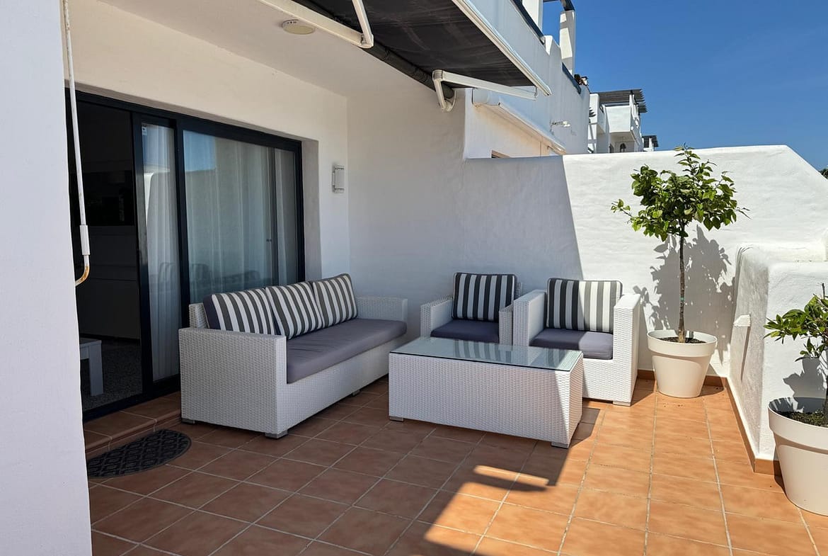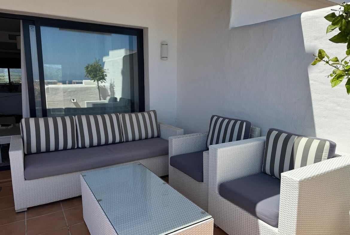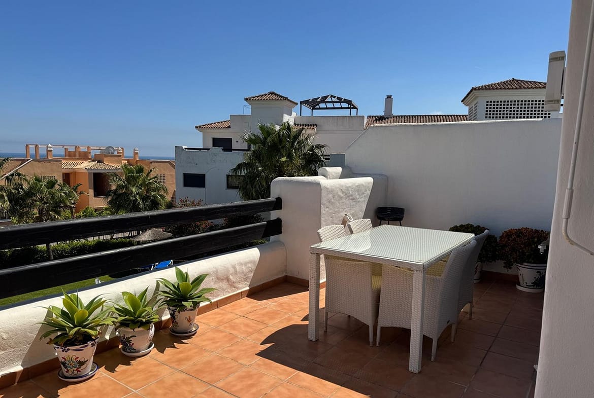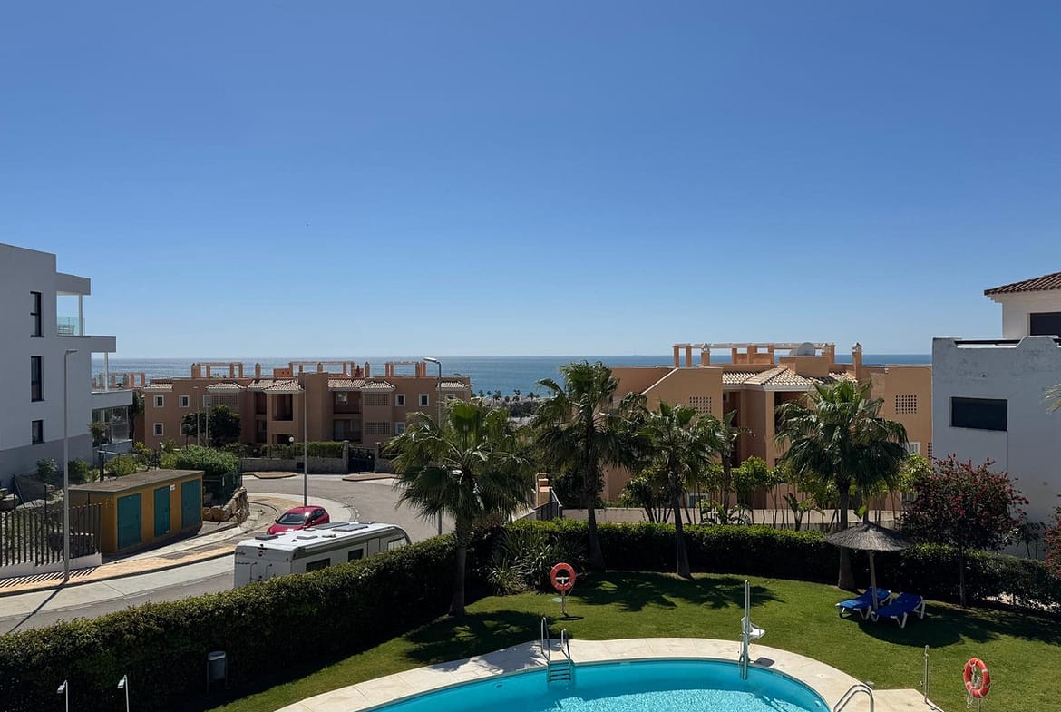 The apartment features a semi-open plan kitchen with integrated Bosch appliances, seamlessly combining style and functionality. The location offers ultimate convenience, just a short stroll from Casares beach, local chiringuitos, restaurants, mini-markets, and the clubhouse, while La Duquesa Marina is only 5 minutes away, and Estepona 10–12 minutes by car.