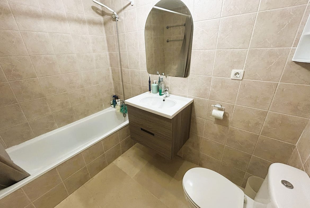 Entrance is from a rear terrace into the apartment. The kitchen is a fully fitted and equipped open plan area overlooking a good size dinning/living room. The double windows create a bright sunny room and lead onto the terrace.