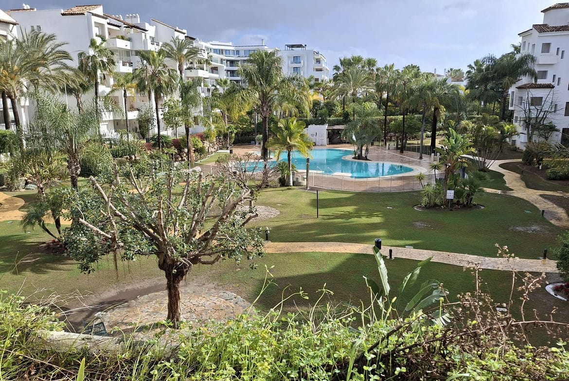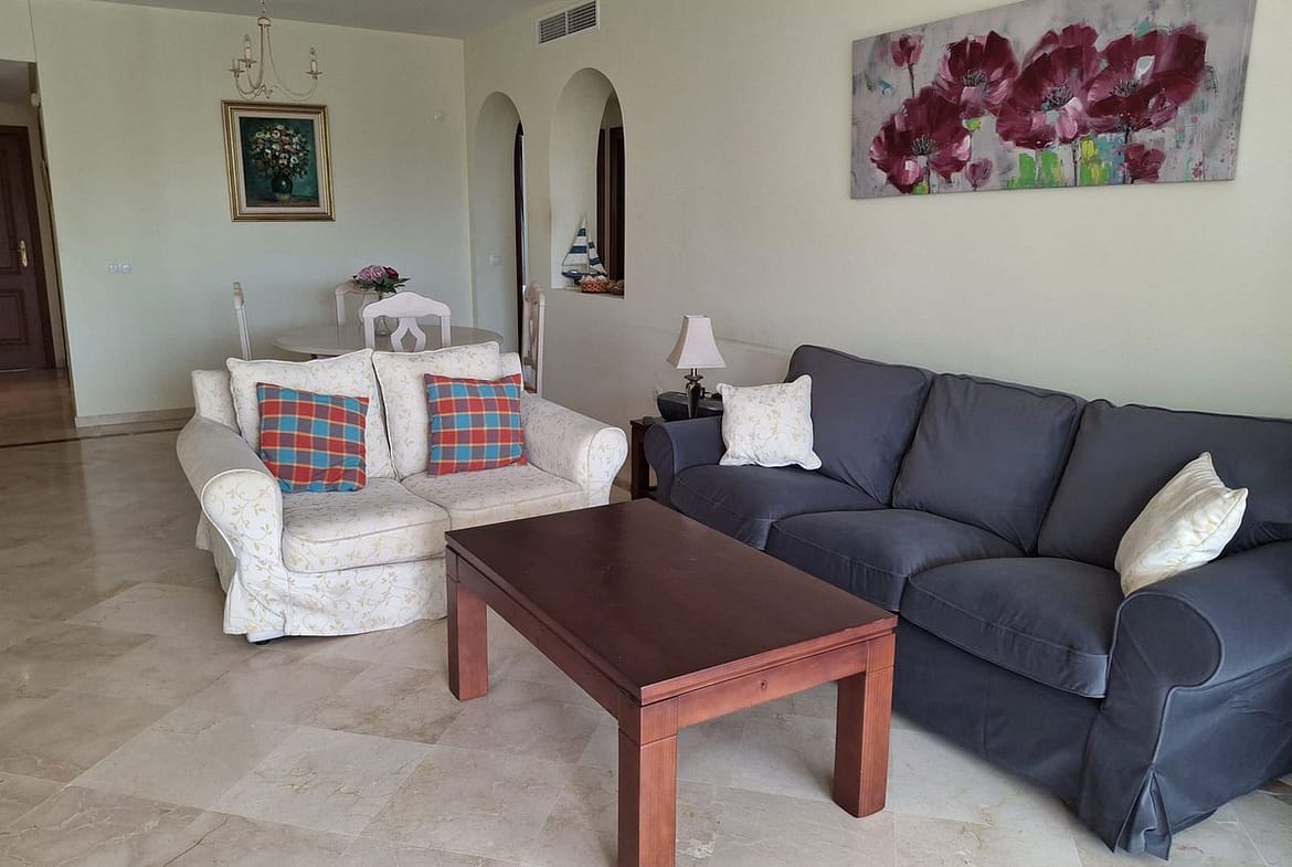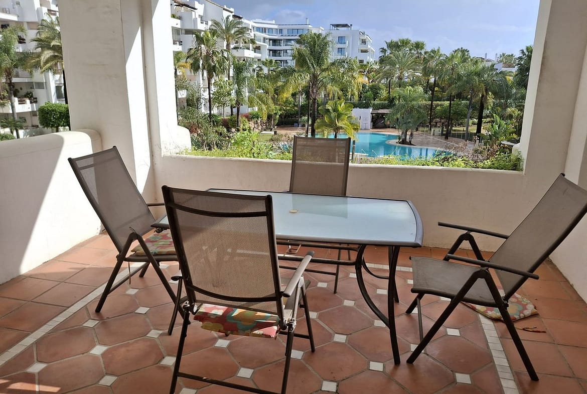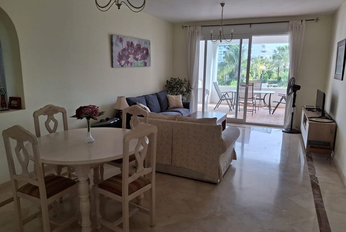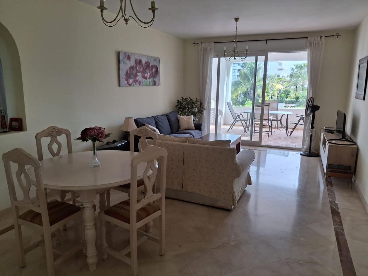 Attractive apartment located in the beach side urbanization of Costalita. The complex features various communal swimming pools, landscaped sub-tropical gardens with fountains, 24 hours security and a direct access onto the beach. This charming property offers two bedrooms, two bathrooms with master (en-suite), spacious lounge and a fully fitted kitchen with utility room. Finished to high standards the property offers marble floors, air conditioning, double glazed windows and electric shutters. The apartment has a good size terrace which overlooks the gardens and swimming pool. Walking distance to all amenities bars, shops, restaurants and supermarkets.