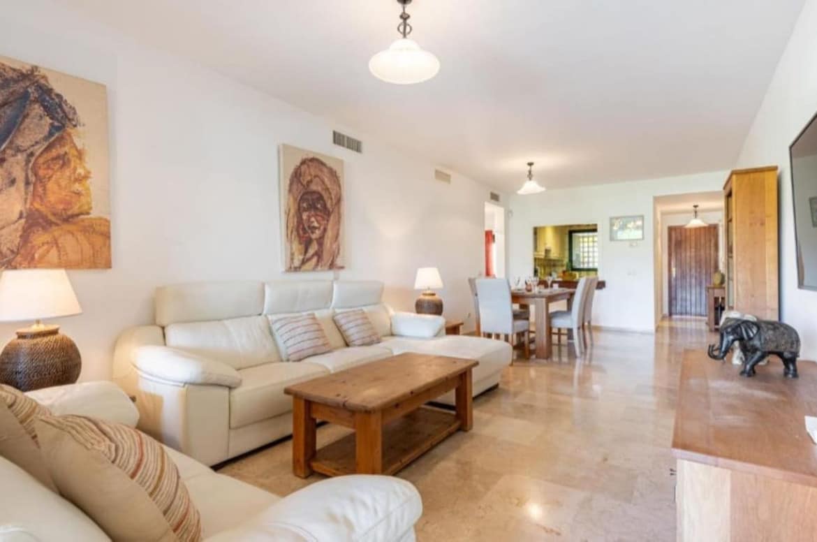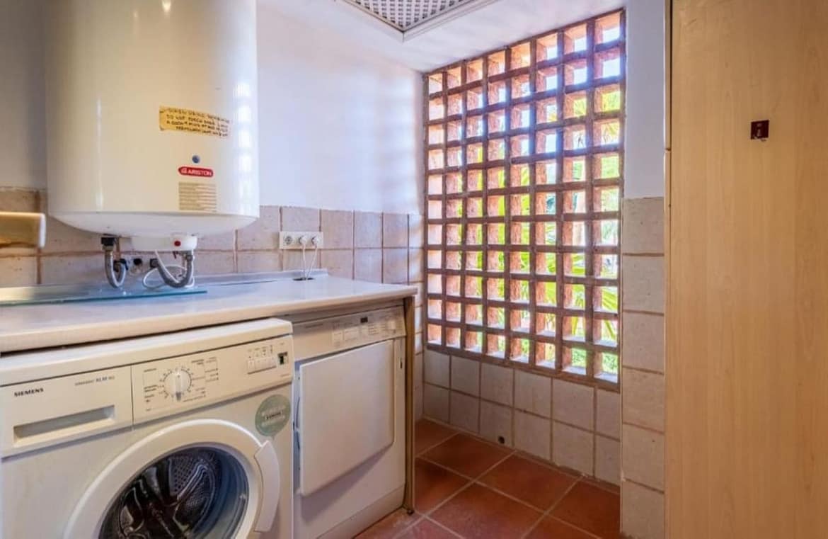 Spacious fully furnished 2 bed 2 bath apartment. Located on the first floor in the El Campanario complex between San Pedro and Cancelada. The kitchen is fully equipped with oven, hob, extractor, dishwasher, fridge/freezer, microwave and Nespresso coffee machine. The separate laundry area has a washing machine and dryer, hot water tank and space for storing cleaning equipment. The large lounge/diner has double doors leading to the west facing terrace which overlooks the pool and gardens. The Master bedroom also has direct access to this terrace. The master bedroom has an ensuite bathroom with bathtub, shower over, toilet and twin sinks. The second bedroom has 2 single beds. There is a second full bathroom. There is a lift to the front door of the apartment and plenty of parking outside the block. The complex has 24hr security and is gated. El Campanario complex is opposite El Campanario Golf & Country Club which has an excellent restaurant and great health & fitness facilities. It is walking distance to the Diana Park centre with shops and many restaurants and bars.