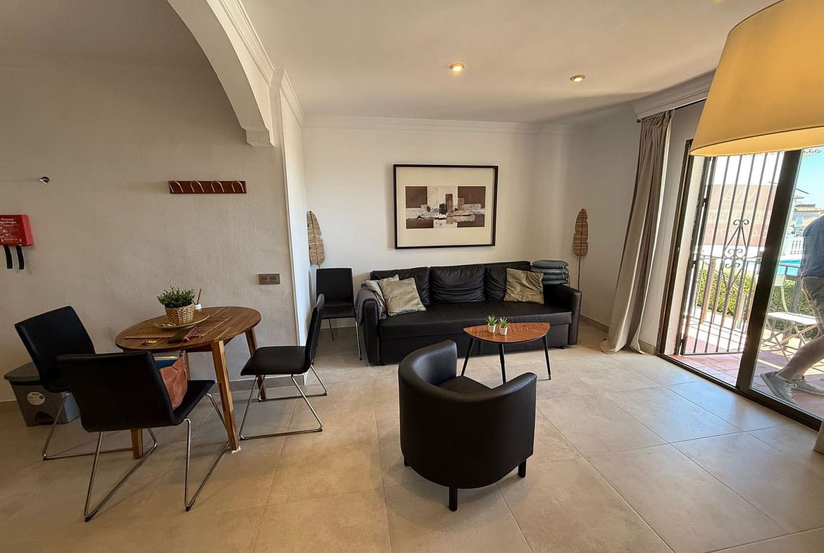 The apartment has 2 bedrooms sharing 1 bathroom and has a good size living room leading to the terrace that gives you direct access to the pool and garden area. Both bedrooms have electric blinds and fitted wardrobes.