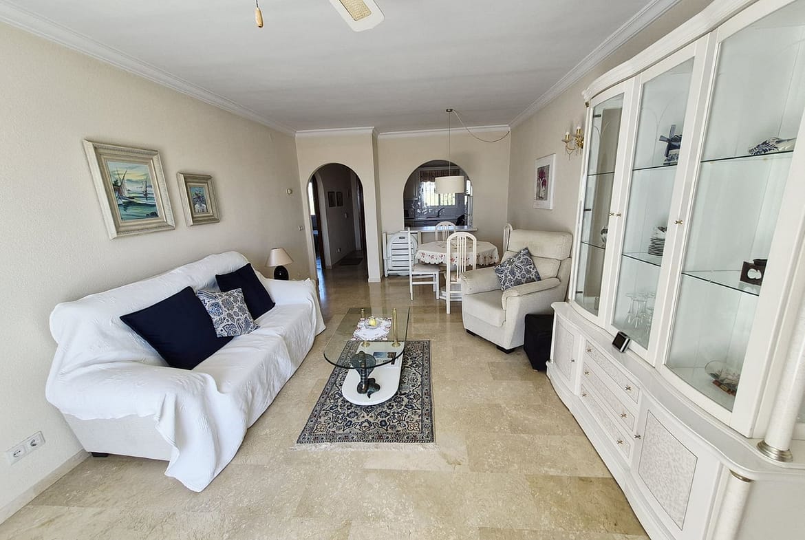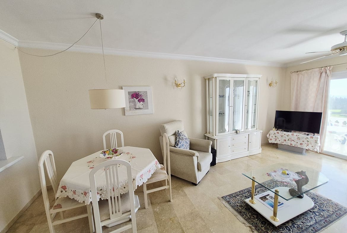 INCREDIBLE PANORAMIC VIEWS FROM THIS BRIGHT AND SPACIOUS APARTMENT WHICH LOOKS OUT OVER THE BAY OF LA CALA AND EL CHAPARRAL GOLF COURSE.