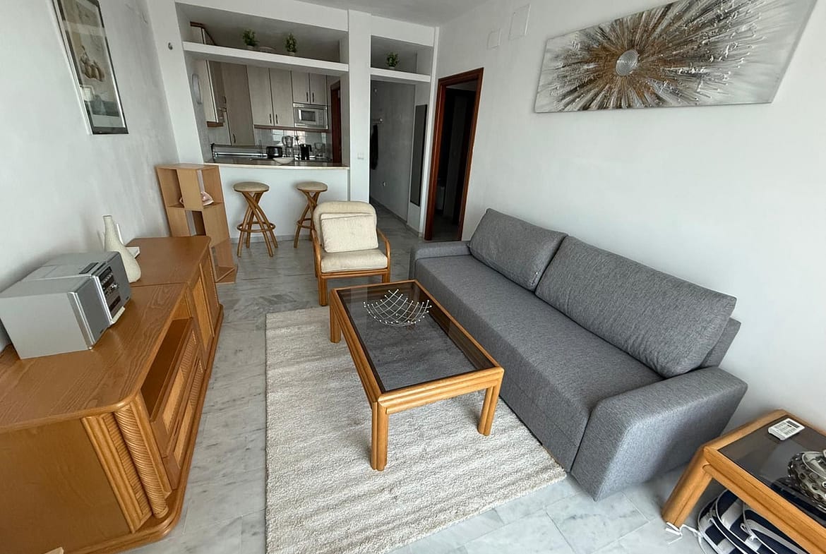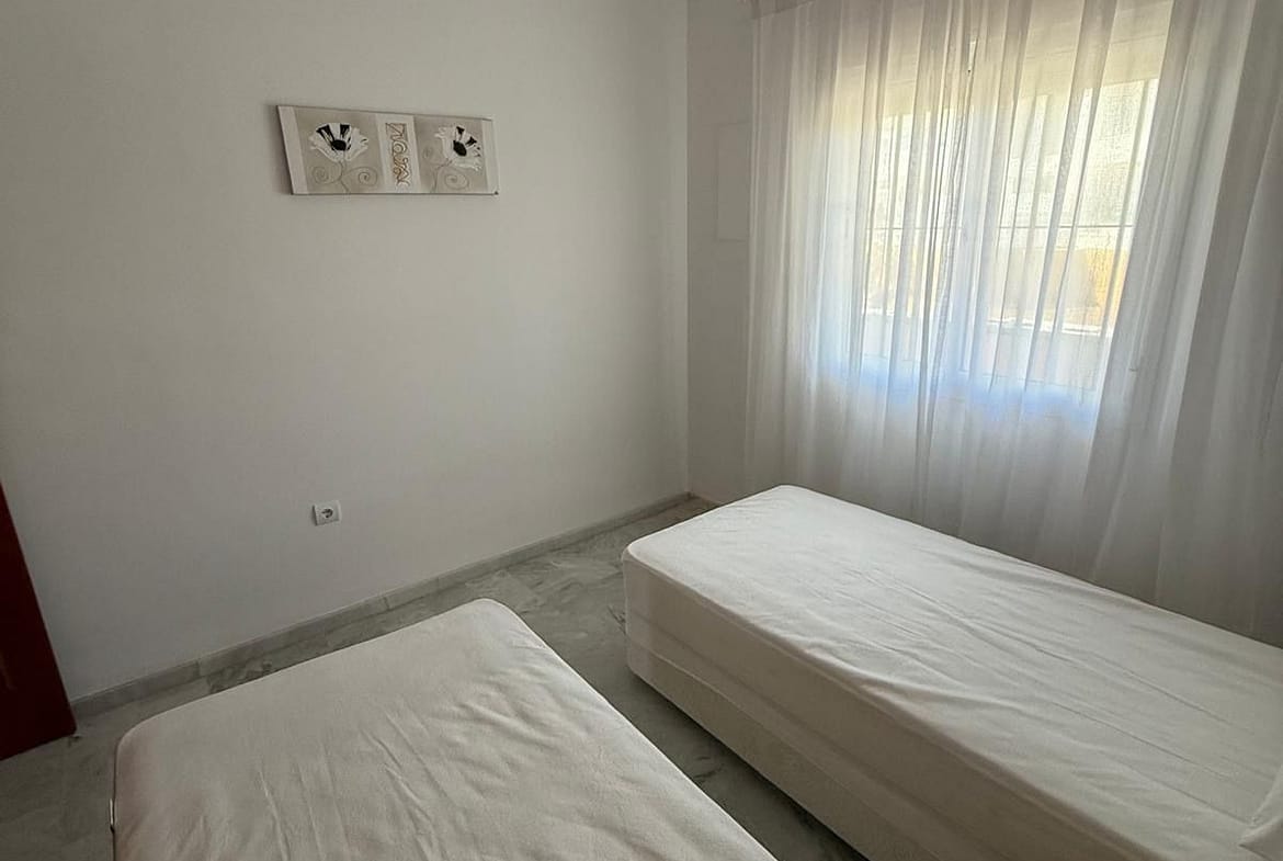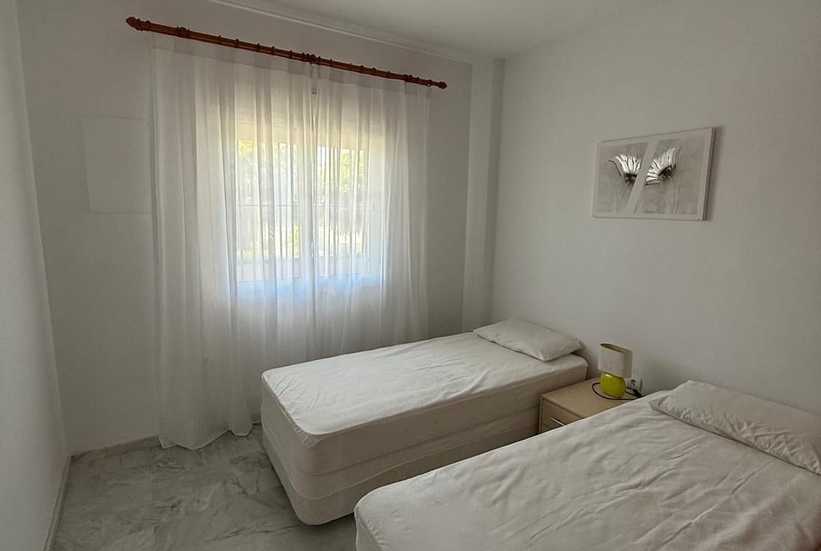 A two-bedroom apartment is available for rent in the El Faro area (Fuengirola), located in a gated residential complex. The property features two bedrooms, two bathrooms, a living room with an open-plan kitchen, and a terrace overlooking tropical gardens and the swimming pool. The complex offers a secure, enclosed area and includes an underground parking space. Ideally located, with close proximity to all amenities and infrastructure.