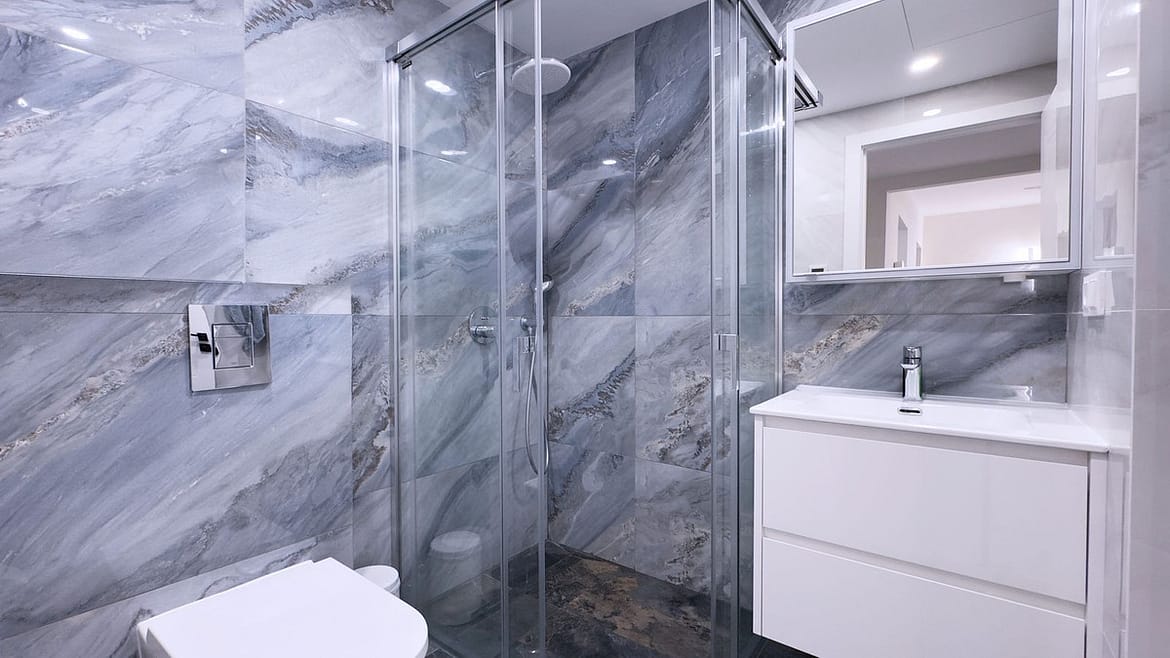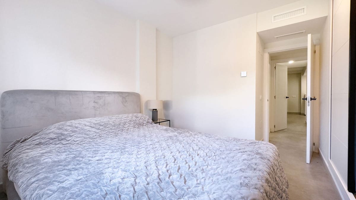 From the master bedroom and living room, you access a generous 28 m² private terrace that extends onto a 30 m² private garden, featuring a barbecue area and beautiful views of the communal pool and tropical gardens—perfect for enjoying the Costa del Sol’s sunny climate year-round.