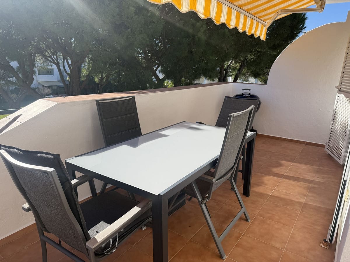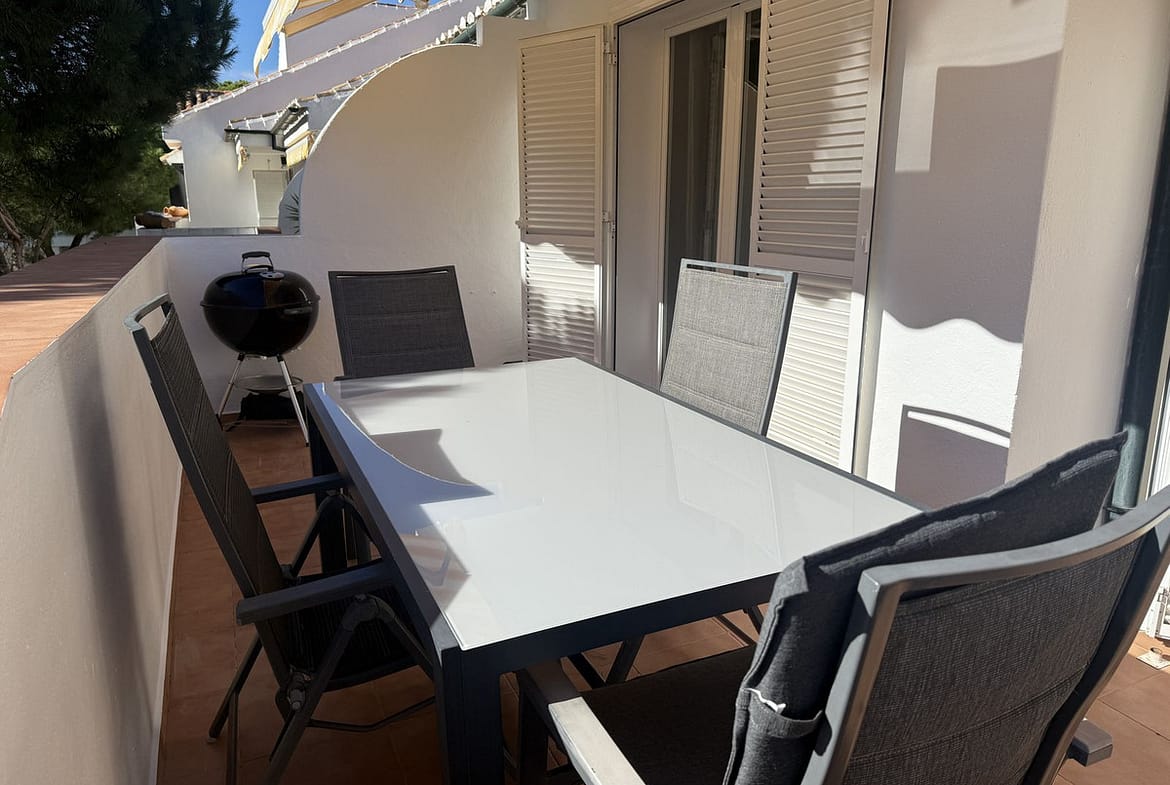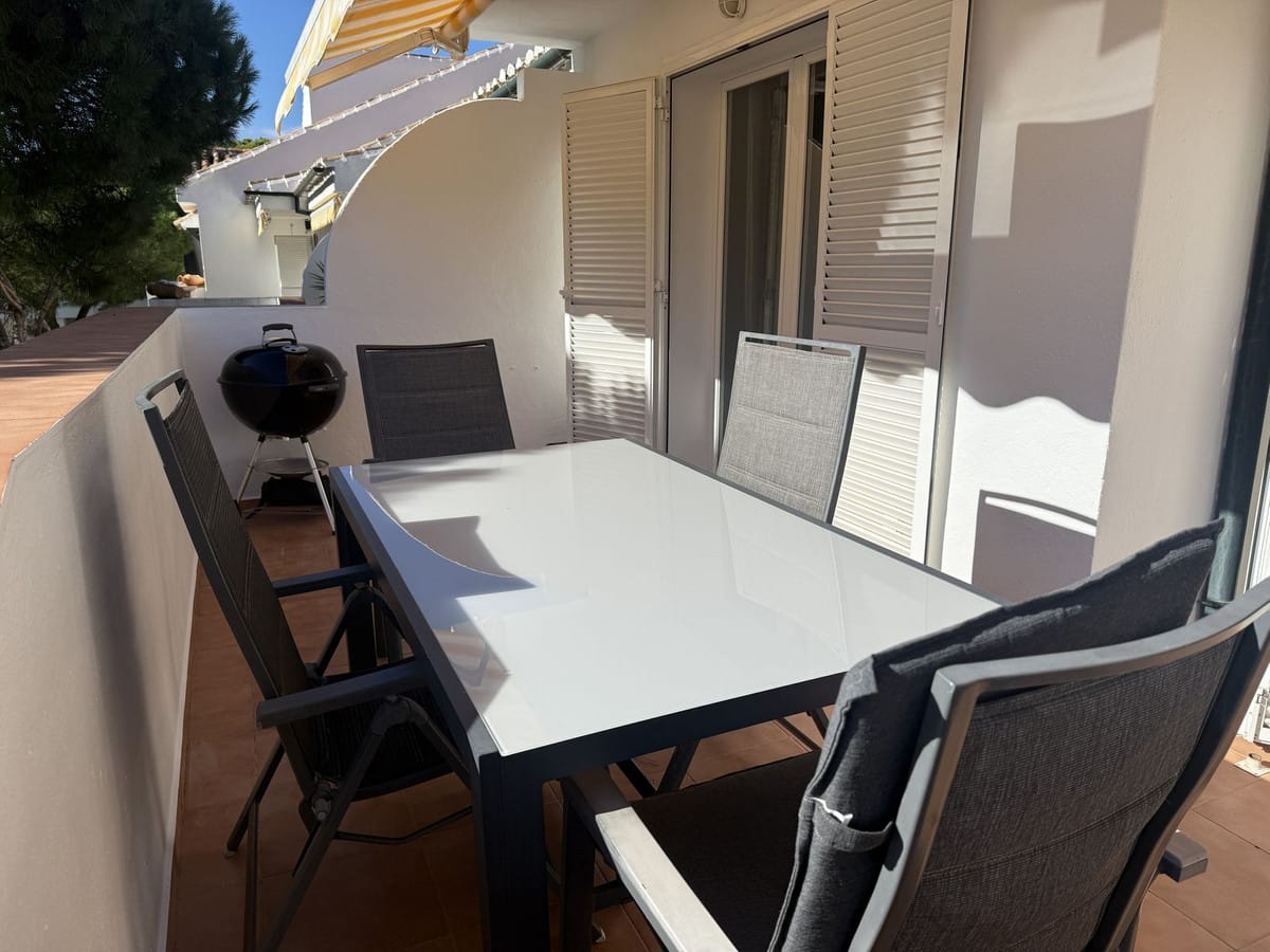 Situated on the second floor, the apartment welcomes you with a well-appointed kitchen to the left and a bedroom with a bathroom to the right as you enter. Moving further in, you’ll find a spacious living and dining area that opens onto two private terraces. One of these terraces features a built-in barbecue area with lovely views of the swimming pool—ideal for entertaining and relaxing.