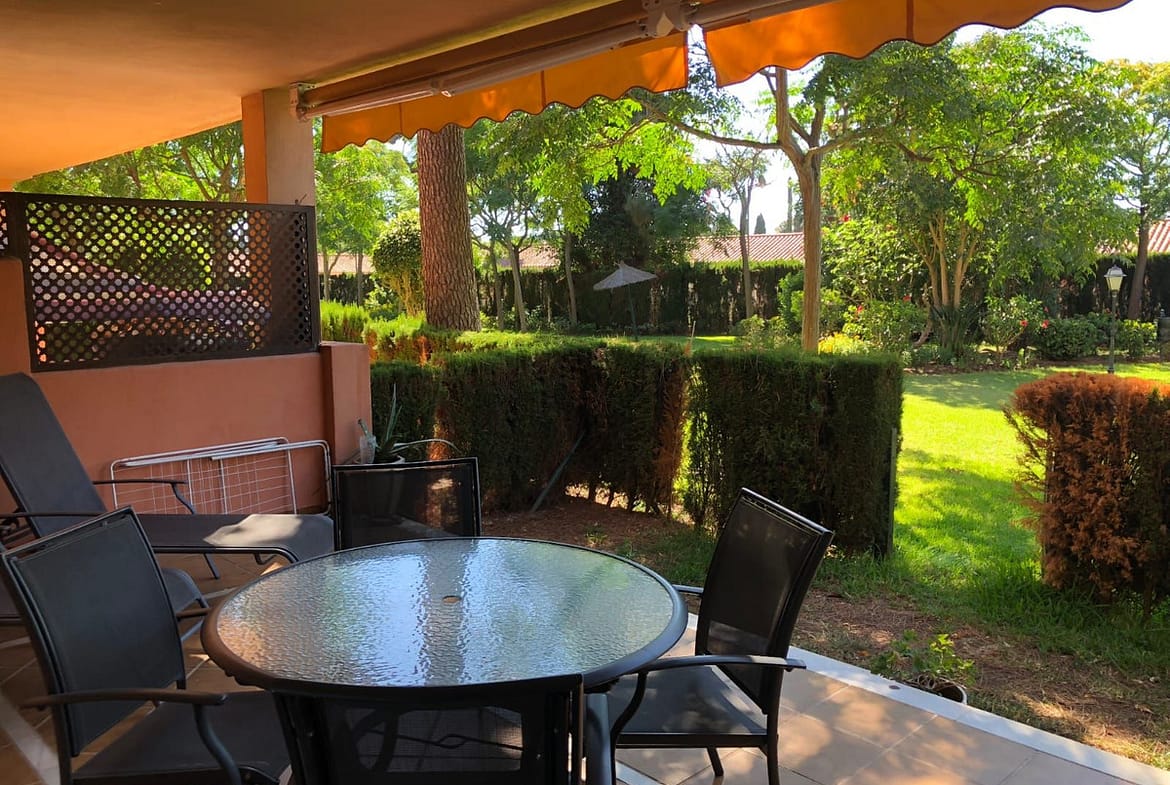 Beautiful flat located in the Pino Golf community in Elviria. Spacious ground floor flat facing west, overlooking the communal gardens and swimming pool.