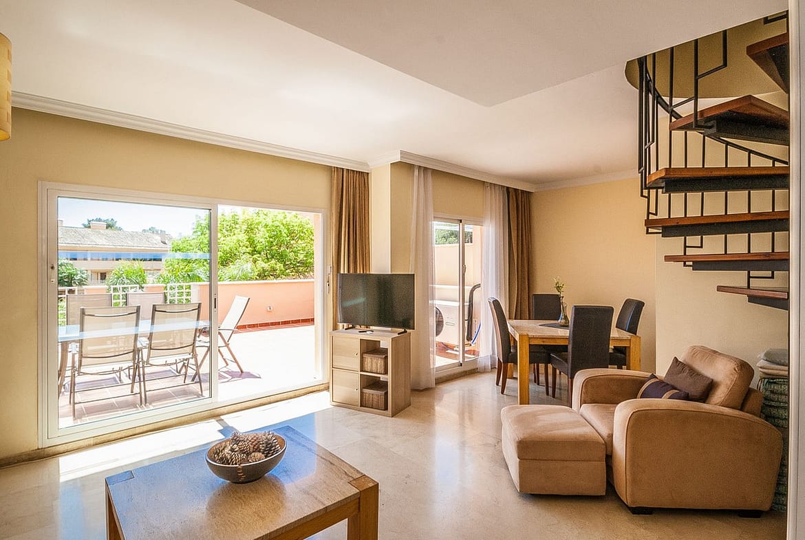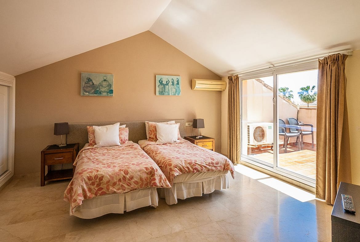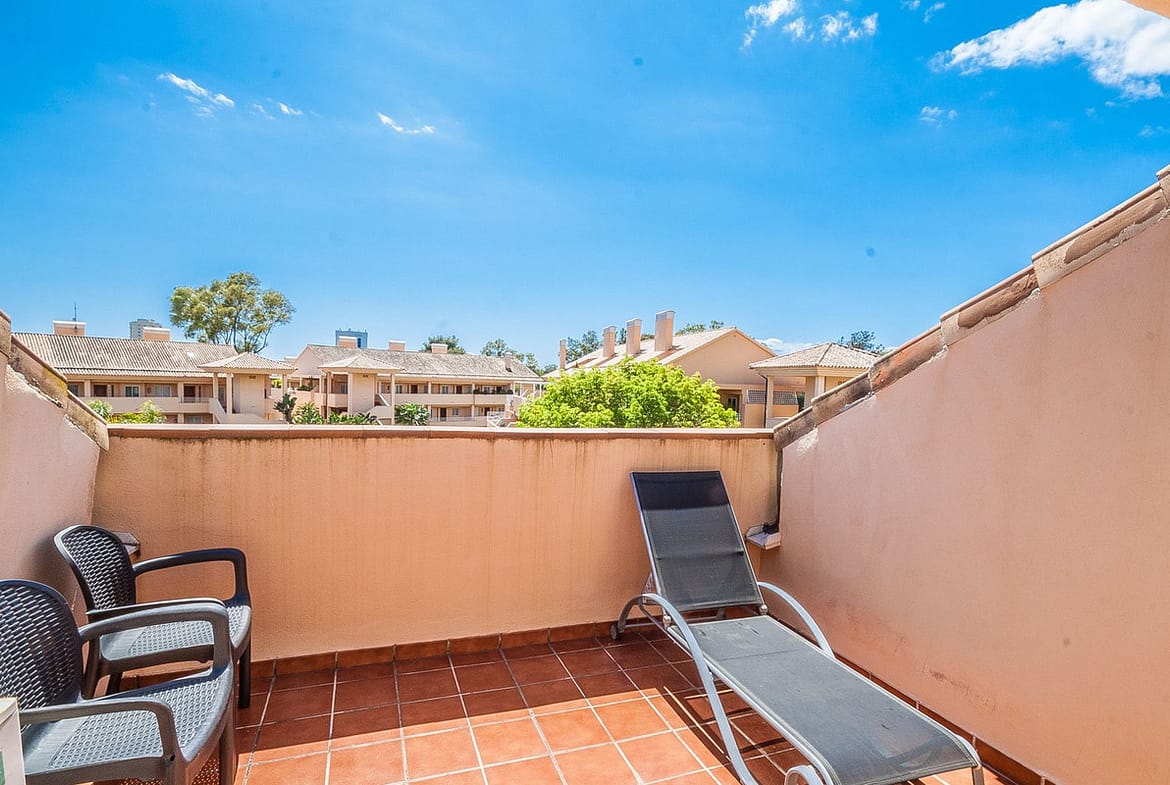 Discover your dream penthouse in Elviria! This stunning 2-bedroom, 2-bathroom residence boasts 120 m² of luxurious living space and a spacious 31 m² private terrace, perfect for soaking up the sun. Enjoy breathtaking views of the garden and communal pool while being just steps away from golf courses, shops, the sea, and schools. The south-facing orientation ensures plenty of natural light, while features like marble flooring, fitted wardrobes, and a fully equipped kitchen add to the elegance. With 24-hour security, underground parking, and a gated complex, your peace of mind is guaranteed. Don’t miss out on this exceptional opportunity to live in paradise!