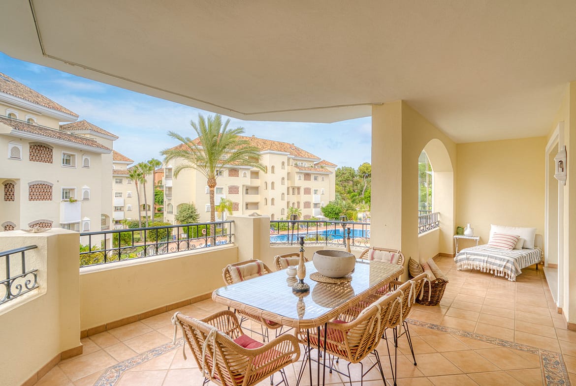 Beautiful south-facing, two-bedroom apartment located in the prestigious Hacienda Playa, Elviria. Designed for comfortable coastal living and filled with natural light, the property features two large bedrooms, two bathrooms and a fully equipped kitchen, making it ideal for holidays or year-round use. Additionally this apartment also includes the convenience of one underground parking space and one secure storage room. This gated community offers well maintained gardens, tennis courts and a communal swimming pool. Perfectly situated in the heart of Elviria, the property is within walking distance of the famous Nikki Beach, as well as a fantastic selection of restaurants, cafes, and shops. It’s also close to several top international schools, adding to its appeal for both families and investors. With its prime location and excellent local amenities, this property offers strong rental potential.