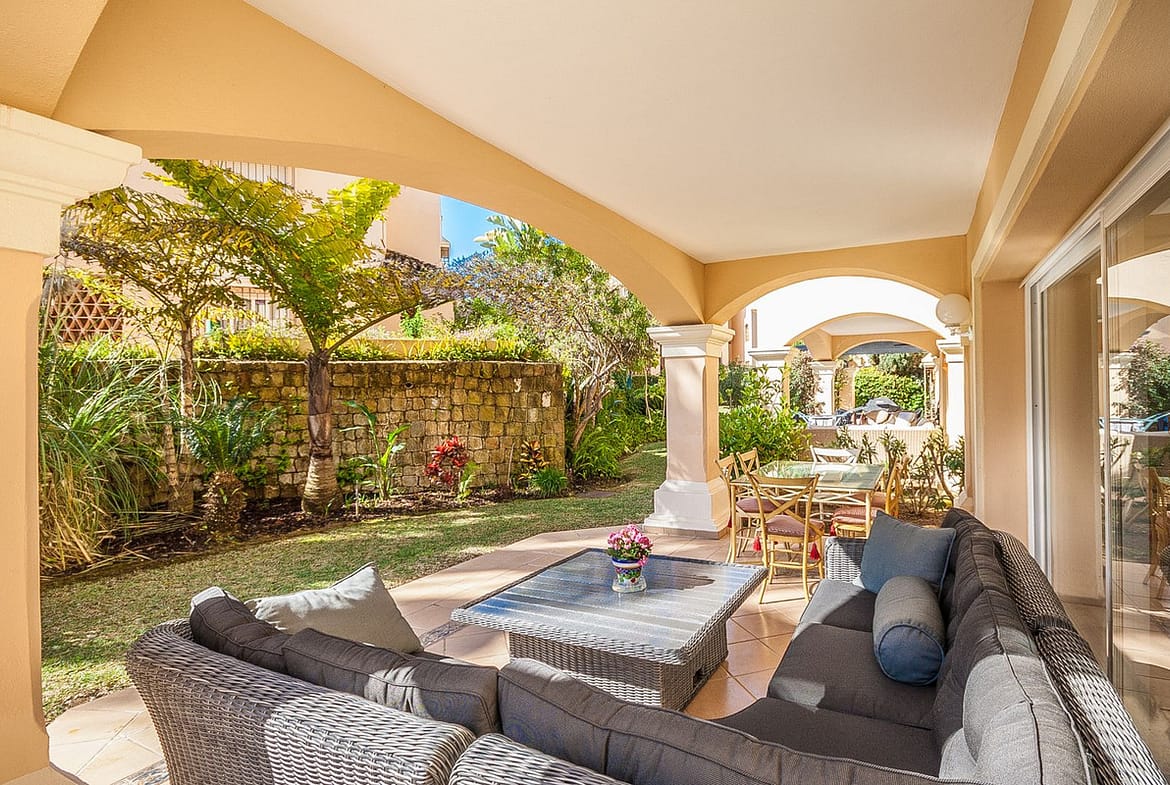 Discover your dream retreat in this stunning garden apartment, ideally situated just a short stroll from vibrant shops and the pristine beach. Nestled within a fully gated community, residents enjoy access to four sparkling swimming pools and lush tropical gardens. Spanning 117 square meters, this spacious apartment features the potential to open up the kitchen, enhancing the flow of the living space. Luxurious bathrooms are equipped with underfloor heating for added comfort, while the expansive terrace offers both open and covered areas, perfect for soaking up the sun or enjoying a shaded escape. Embrace a lifestyle of relaxation and convenience in this exceptional property.