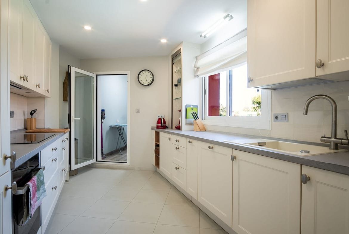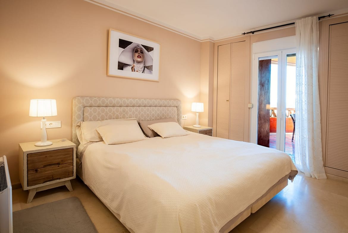 We offer a unique apartment in one of the best beachfront complexes in Elviria. This cozy, fully renovated two-bedroom apartment with a spacious living room and a panoramic terrace is a perfect choice for those who appreciate comfort and privacy. It features manicured gardens, a private tennis court, a swimming pool, a pond, and private access to some of Marbella's best beaches. The new kitchen is equipped with MIELE, NEFF, and LIEBHER appliances. New air conditioning system from DAIKIN. It also features a separate laundry room and dressing room. A spacious 25 m² storage room and a parking space are included.