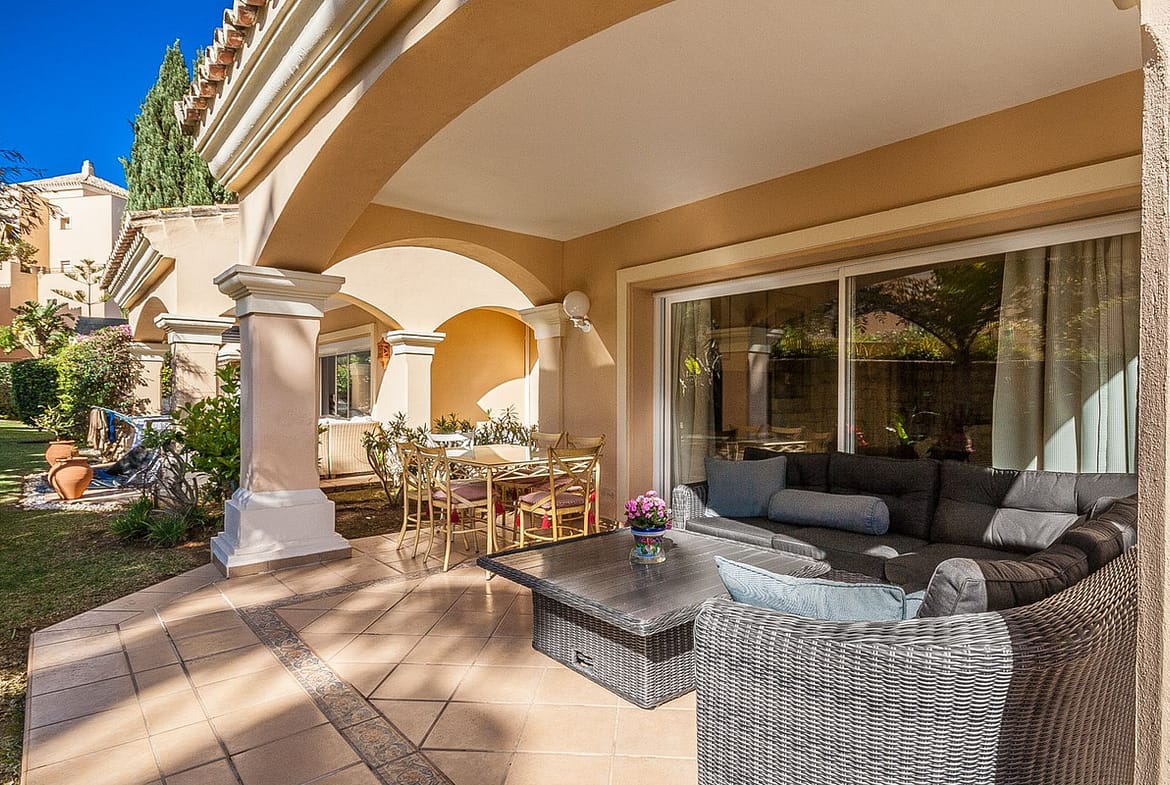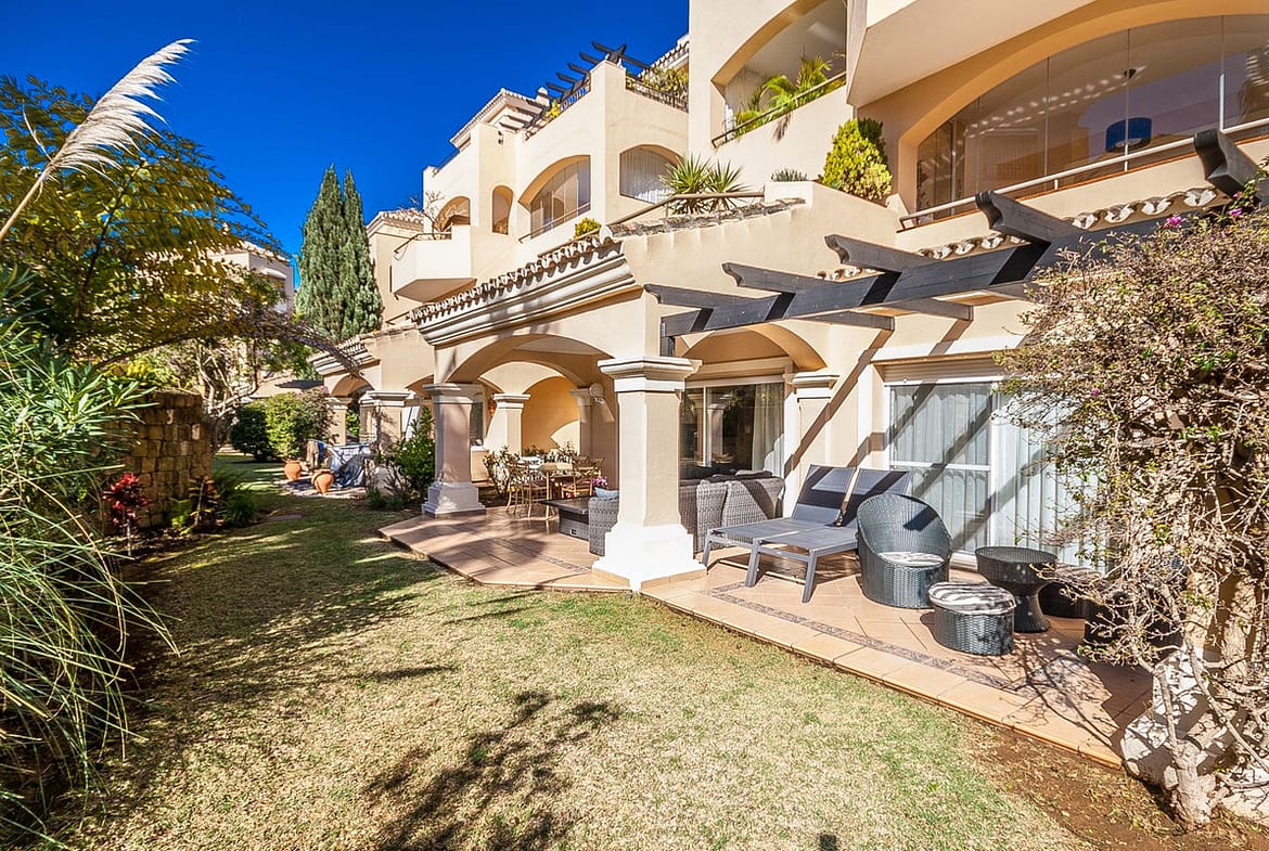 Discover your dream retreat in this stunning garden apartment, ideally situated just a short stroll from vibrant shops and the pristine beach. Nestled within a fully gated community, residents enjoy access to four sparkling swimming pools and lush tropical gardens. Spanning 117 square meters, this spacious apartment features the potential to open up the kitchen, enhancing the flow of the living space. Luxurious bathrooms are equipped with underfloor heating for added comfort, while the expansive terrace offers both open and covered areas, perfect for soaking up the sun or enjoying a shaded escape. Embrace a lifestyle of relaxation and convenience in this exceptional property.