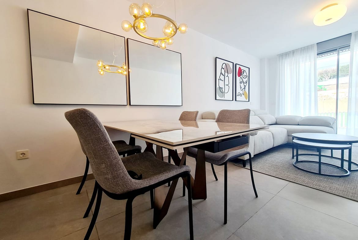 This magnificent new-build complex is located in East Marbella and is only 200 meters from the beautiful sandy beaches.The property have spacious living room with open plan kitchens fully fitted and equipped with top of the range appliances; 2 bedrooms; 2 bathrooms (master en-suite) and a covered porch/terrace. In the complex you will be able to enjoy swimming pools, a gym, co-working space and an underground parking garage. A wide gastronomic offer next door and at only a 10-minute drive you are in the center of Marbella or Puerto Banús.