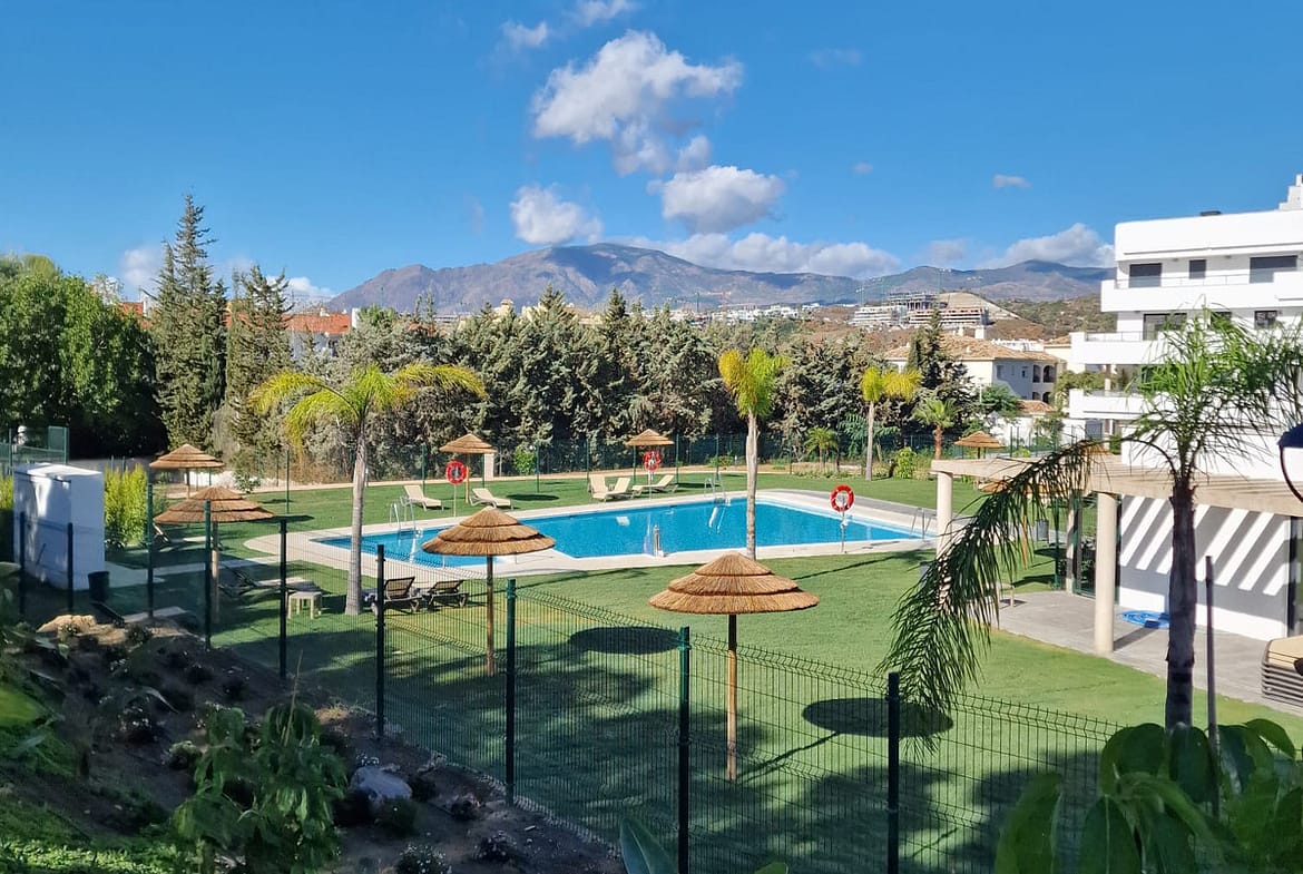 Luxuriate in this exquisite two-bedroom apartment nestled within the prestigious Benatalaya urbanization, perfectly situated on the first line of the Atalaya Golf Club. This prime location offers a rare blend of peaceful exclusivity and modern convenience, surrounded by lush greenery, rolling fairways, and breathtaking panoramic views that capture the essence of the Costa del Sol lifestyle.