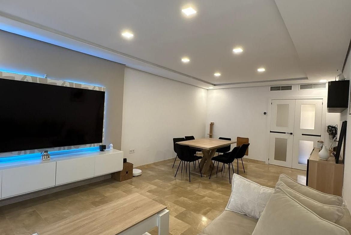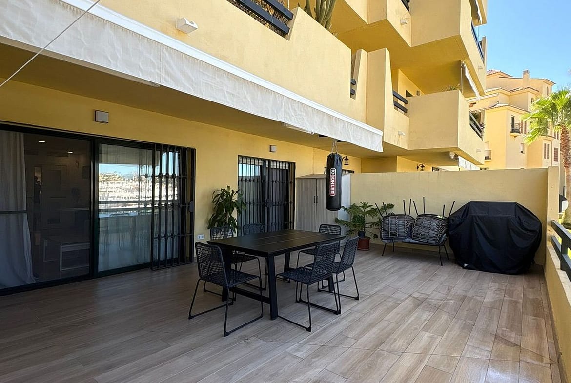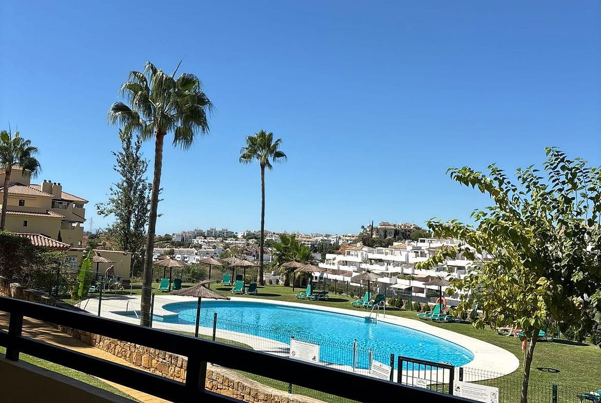 Elevate your coastal living in this elevated ground-floor apartment with an enormous terrace, nestled in the serene La Concha-Resina Golf area of Estepona. Spanning 106 m² built, this west-facing gem features a spacious living room, modern kitchen, two generous bedrooms, and two bathrooms (one en suite) – with the kitchen and bathrooms fully renovated for contemporary style and functionality. Including a garage space and storage room, it's designed for effortless comfort in a tranquil urbanization boasting lush green areas, a swimming pool, children's playground, football field, tennis courts, and padel courts. Just a quick 15-minute drive to Estepona and San Pedro, this property offers the perfect balance of peace and proximity to vibrant towns.