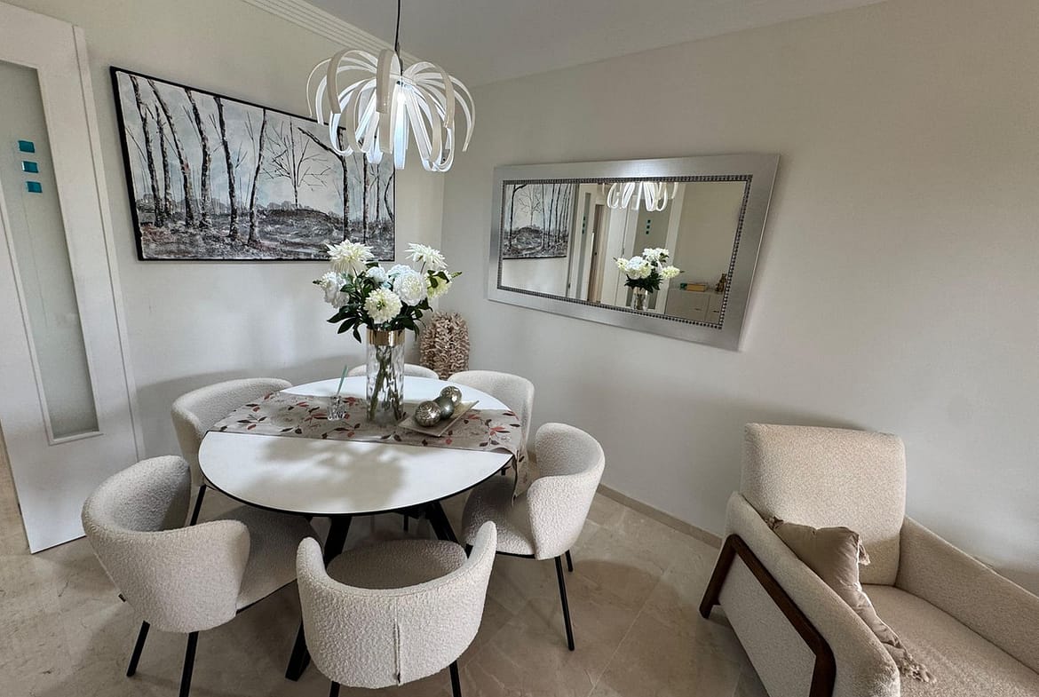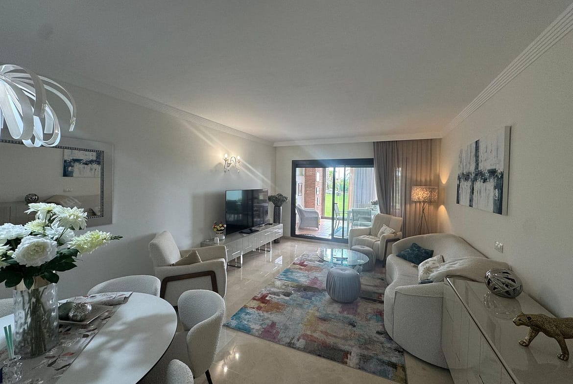 The interior has a very modern look and the spacious terrace offers beautiful views of the gardens and swimming pool. The location is very central, between San Pedro and Estepona, making it ideal for both permanent living and holiday accommodation.