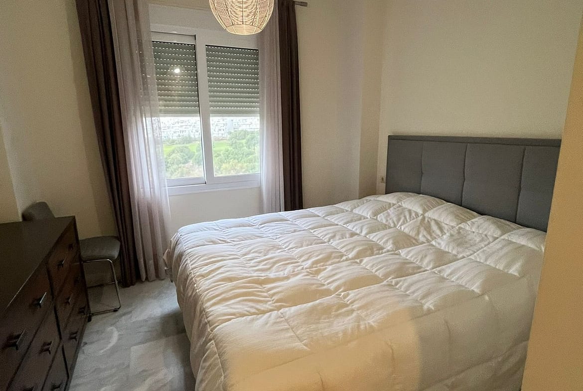 This bright and stylish two-bedroom apartment features a spacious master bedroom with an ensuite bathroom, a modern fully equipped kitchen, and a comfortable open-plan living area that leads onto a southwest-facing terrace with fantastic views over the Valle Romano Golf Course.