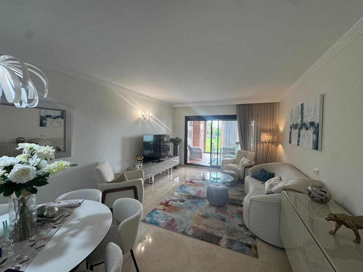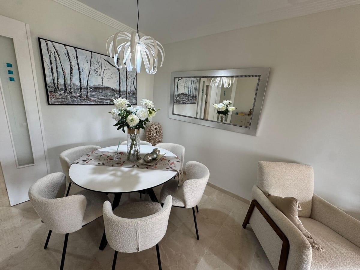 This beautiful ground floor is located in a beautiful urbanization with beautifully maintained gardens, a large swimming pool and a children's pool. The flat is located on the first floor and has a spacious living room with a partially open kitchen. There are two spacious bedrooms and two modern bathrooms.