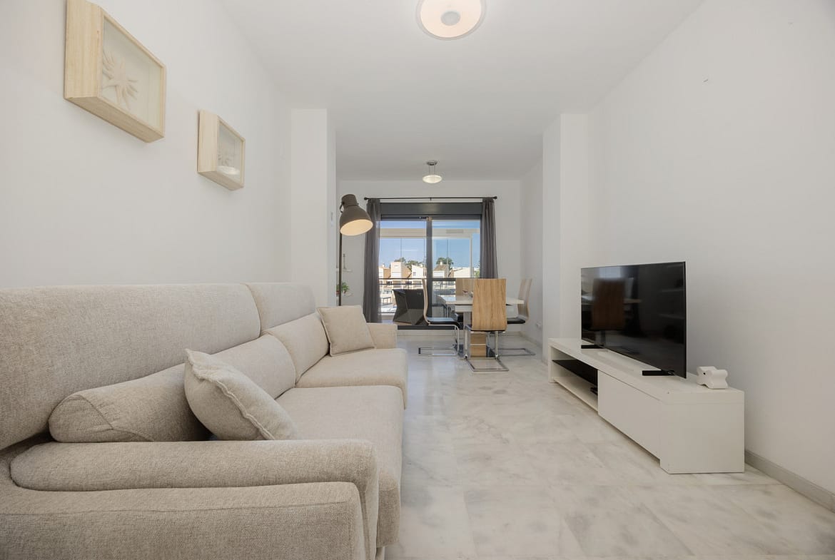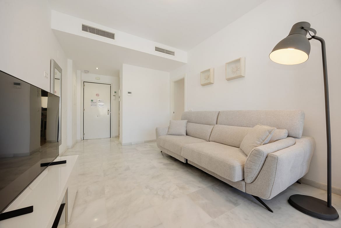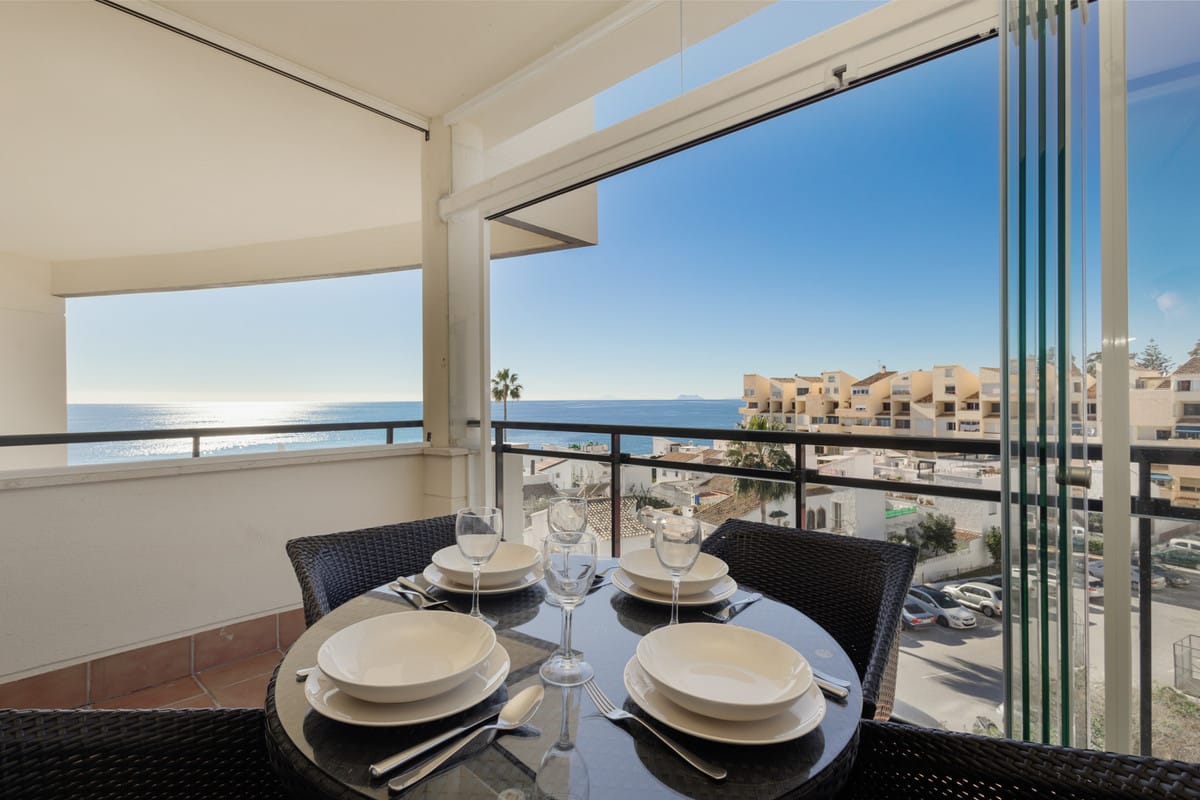 A 110m² apartment for four people, located on the beachfront with direct access to the beach of Guadalmansa. Situated in Cosmo Beach, it offers a wide variety of activities in the area (golf, horseback riding, kitesurfing, tennis). The apartment’s most exclusive spot is on the rooftop, featuring a large, year-round pool offering panoramic sea views, and a solarium area where you can sunbathe and enjoy the unparalleled climate of the Costa del Sol. It has two bedrooms (one en suite) with balconies, a living-dining room, an extra bathroom, a fully equipped kitchen, a glass-enclosed terrace, and private parking. Located near the center of Estepona, it combines comfort, services, and a relaxing environment.
