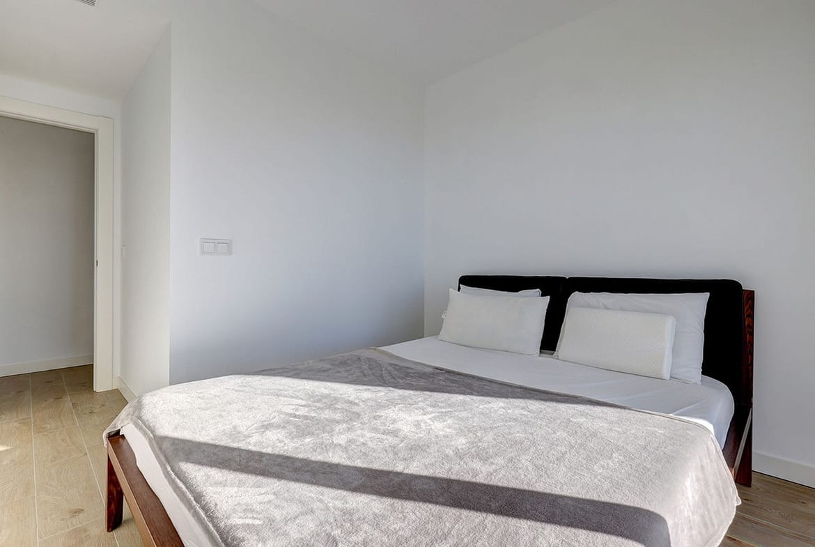To the right of the entrance, a hallway leads to the private night area, where the main bedroom is with its en-suite bathroom, and a well-appointed bedroom, with an external bathroom, also used as a guest bathroom. Both bedrooms enjoy direct terrace access, abundant natural light, and stunning sea views.