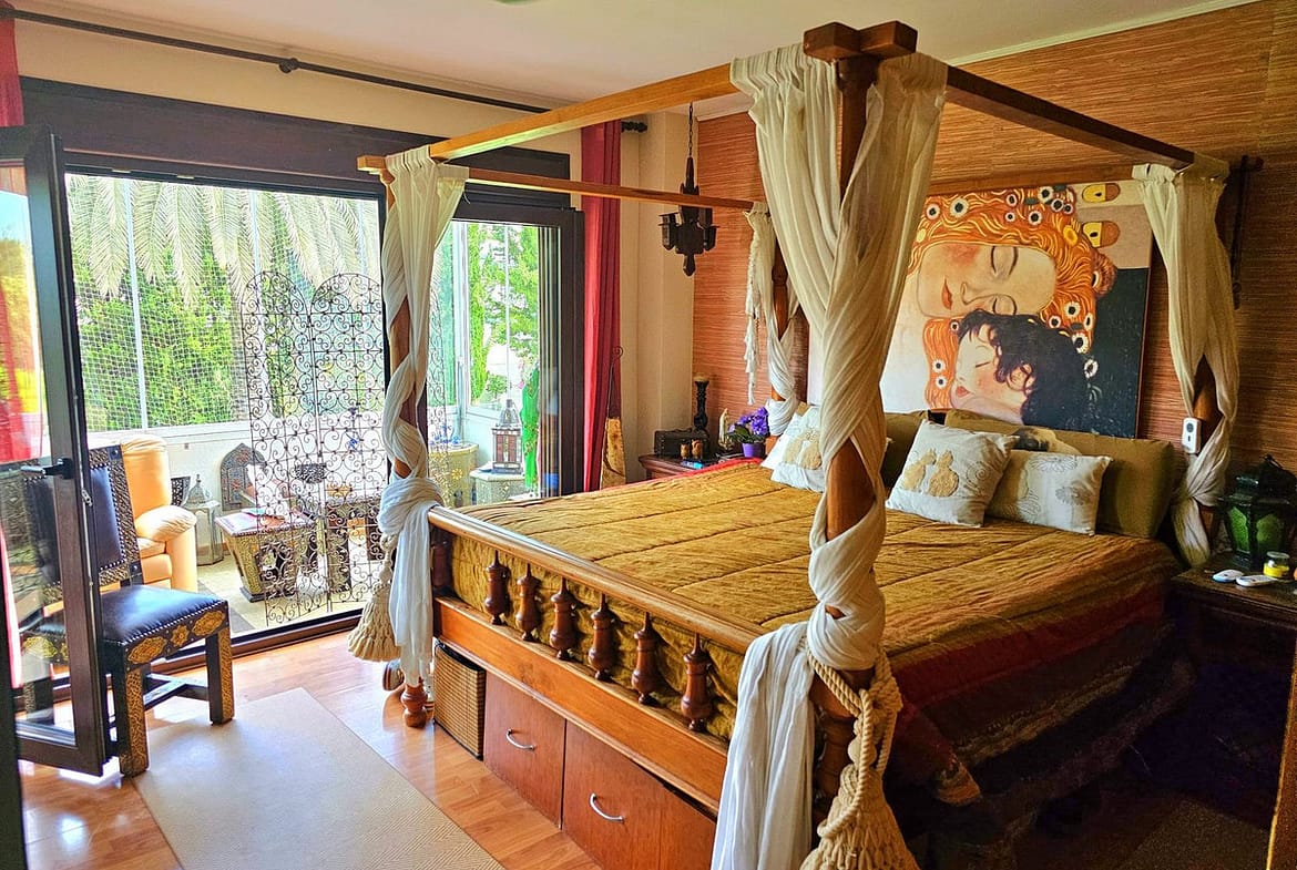 Going up the stairs to level 2 you will find a main bedroom and another smaller bedroom both with direct access to the luminous terrace with the sea views, you have views to the garden and pool and to the sea from there, just magnificant.