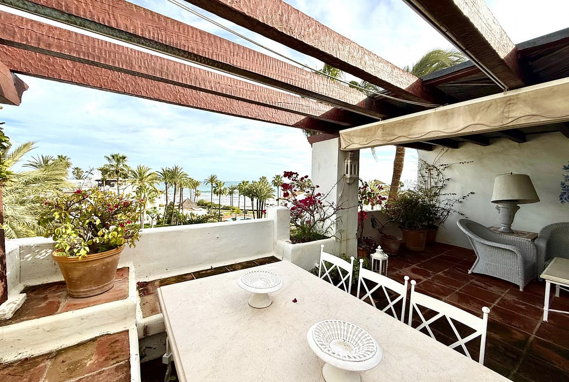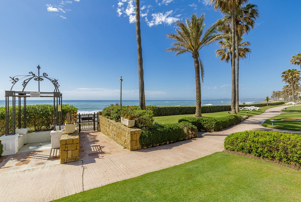 This beachfrontline complex has the private open parking space in the gated complex and is siyuated only 5 minutes walk to the beautiful port of Estepona with it s huge variety of restaurants and night bars and a supermarket 24h open